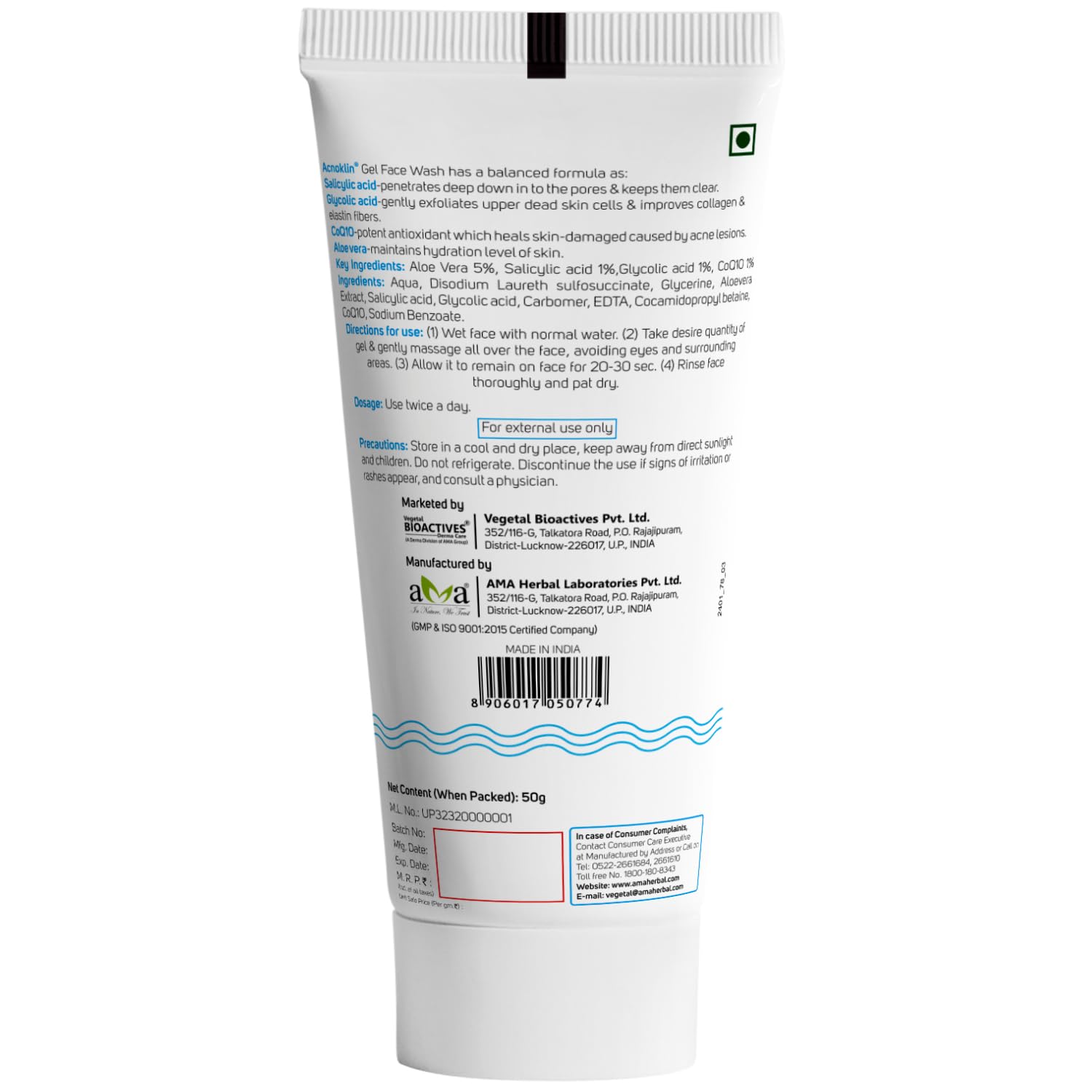 FORMULATION: Gel-based face wash with salicylic acid, glycolic acid, and Q10 enzyme, specifically designed for acne-prone and oily skin types