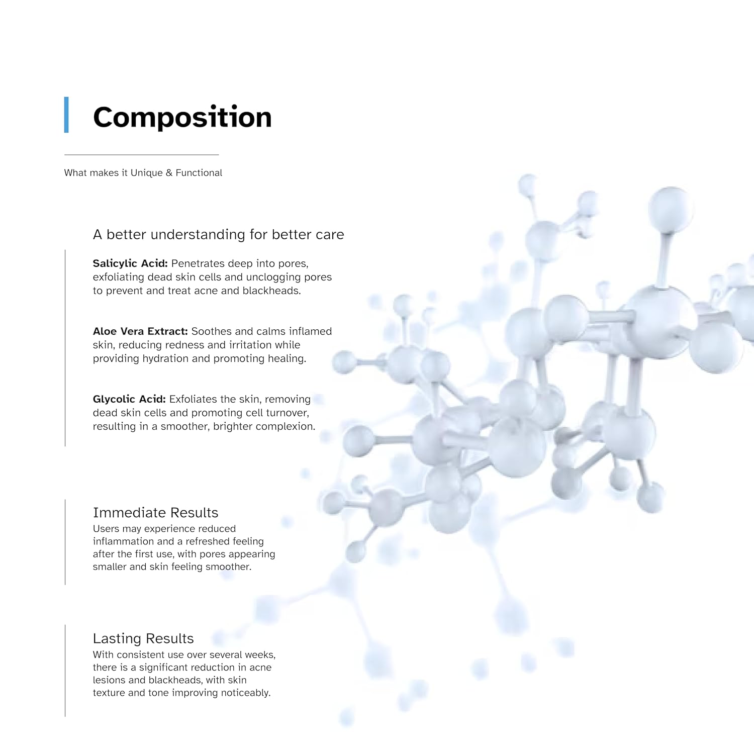 Combats Blackheads: The face wash targets blackheads by dissolving the debris that clogs pores. Salicylic Acid’s ability to penetrate oily skin makes it highly effective in clearing out blackheads and preventing new ones from forming.