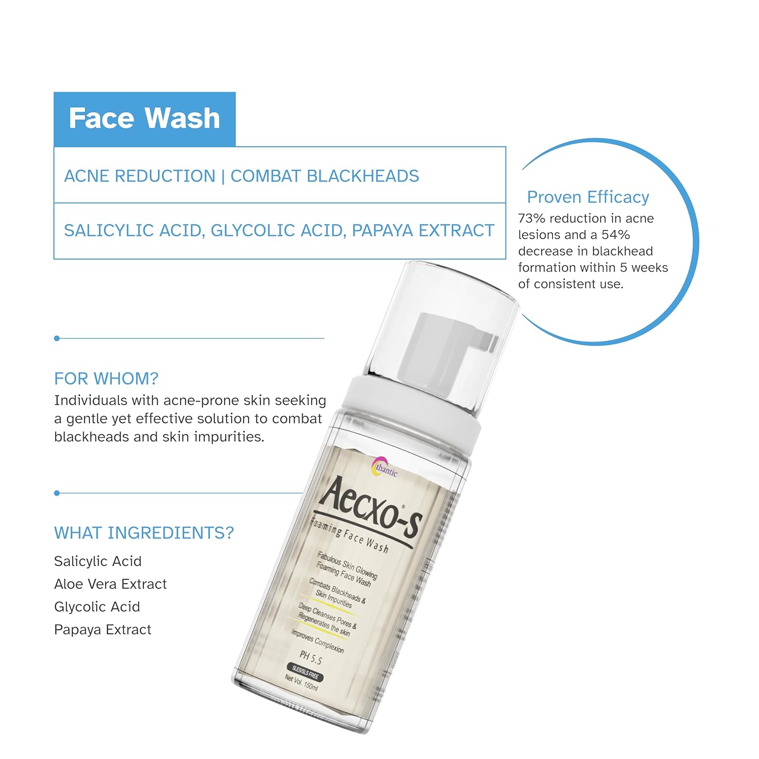 Introducing Aecxo S 2% Salicylic Acid Face Wash, a scientifically advanced formula specifically designed for acne-prone and oily skin. This gentle yet powerful face wash features 2% Salicylic Acid, a beta hydroxy acid (BHA) known for its exceptional ability to penetrate deep into the pores and exfoliate from within. By dissolving excess sebum and dead skin cells, Salicylic Acid effectively unclogs pores, reducing the occurrence of blackheads and breakouts. Additionally, the face wash is enriched with Papaya Extract, which contains natural enzymes like papain that aid in the gentle removal of impurities and dead skin cells. Papaya Extract also boasts anti-inflammatory and antioxidant properties, helping to soothe the skin and prevent further irritation. The combination of Salicylic Acid and Papaya Extract ensures a comprehensive approach to acne prevention and treatment, addressing both existing blemishes and underlying causes. This face wash not only clears existing acne but also prevents future breakouts by maintaining a balanced skin environment. The gentle formula is designed to cleanse without stripping the skin of its natural moisture, making it suitable for daily use. Aecxo S 2% Salicylic Acid Face Wash is your ultimate solution for clear, healthy, and radiant skin. Trust the science behind Aecxo S to transform your skincare routine.