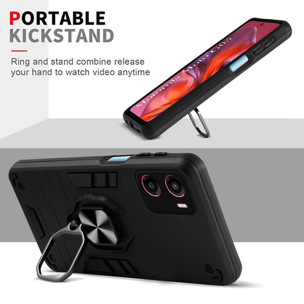 🔄 Rotating ring holder kickstand: Built-in ring rotates 360° for vertical and horizontal viewing—perfect for video calls and streaming.