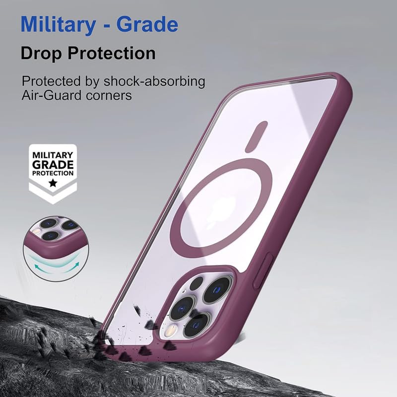 AIBEX Clear Mag-Saf Case for iPhone 13 Pro Max - 1,500 G Strong Magnetic Lock, Crystal-Clear Anti-Yellowing Back | Military-Grade Drop Protection | Camera Guard, Slim & Lightweight - Maroon