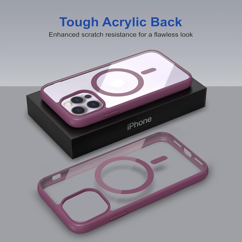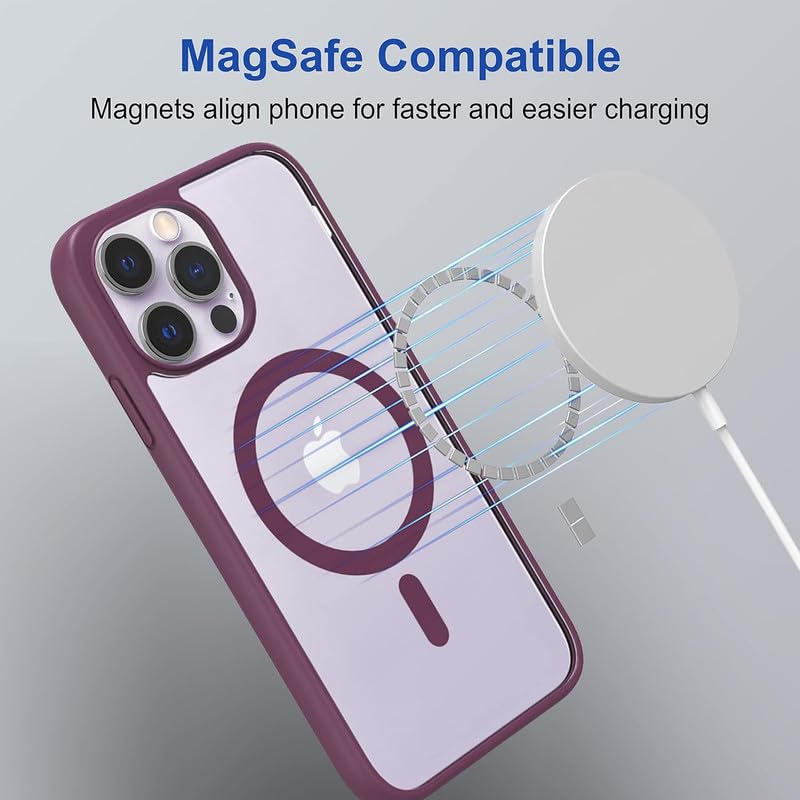 AIBEX Clear Mag-Saf Case for iPhone 13 Pro Max – 1,500 G Strong Magnetic Lock, Crystal-Clear Anti-Yellowing Back | Military-Grade Drop Protection | Camera Guard, Slim & Lightweight – Maroon
