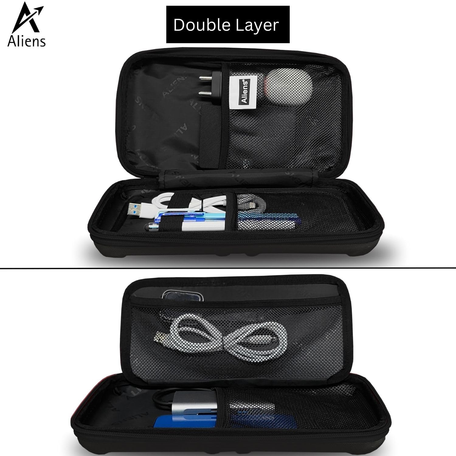 Universal Compatibility & Multi-Functional Storage: The Aliens Hard Drive Case is designed to fit all standard 2.5-inch hard drives from top brands like Samsung, Toshiba, Seagate, WD Essentials and many more. Dimension is 28 x 12 x 8 cm. More than just an HDD case, it also securely holds SSDs, chargers, pen drives, cables, power banks, smartphones, and other daily tech essentials—making it a perfect gadget organizer for work, travel, or everyday use.