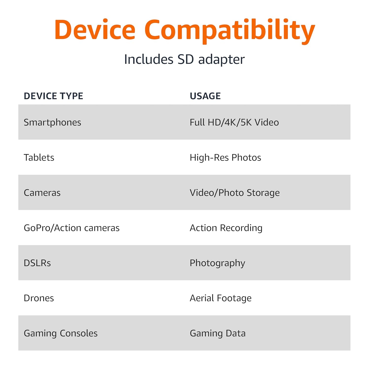 128GB Micro SD Card compatible with smartphones, tablets, cameras, GoPro/action cameras, laptops, desktop computers, DSLRs, drones, gaming consoles and more