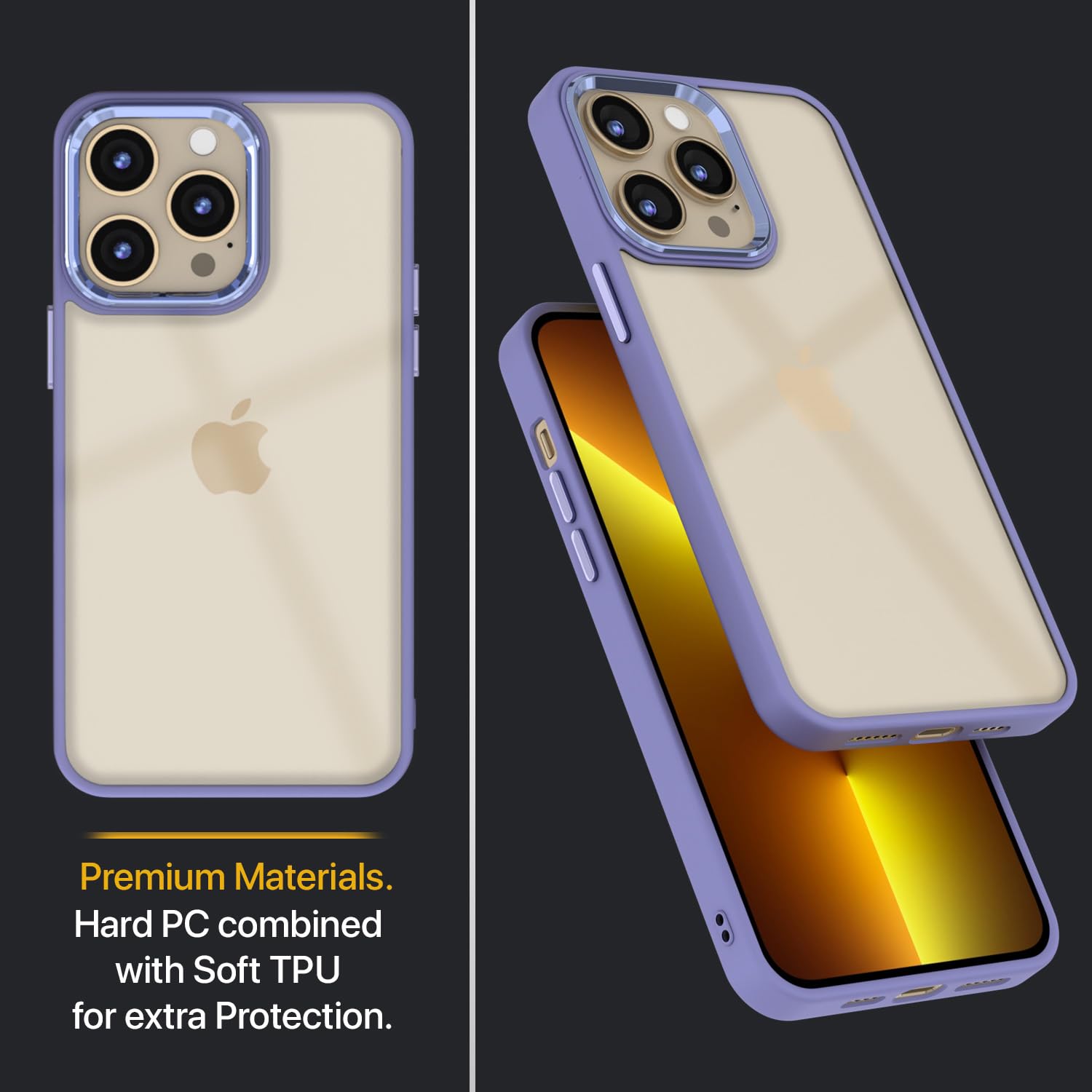 Amazon basics Cover for iPhone 13 Pro Max |Electroplated Crome Metal Ring | Full Camera Protection | Raised Edges | Super Soft Side TPU Bumper Case (Purple)