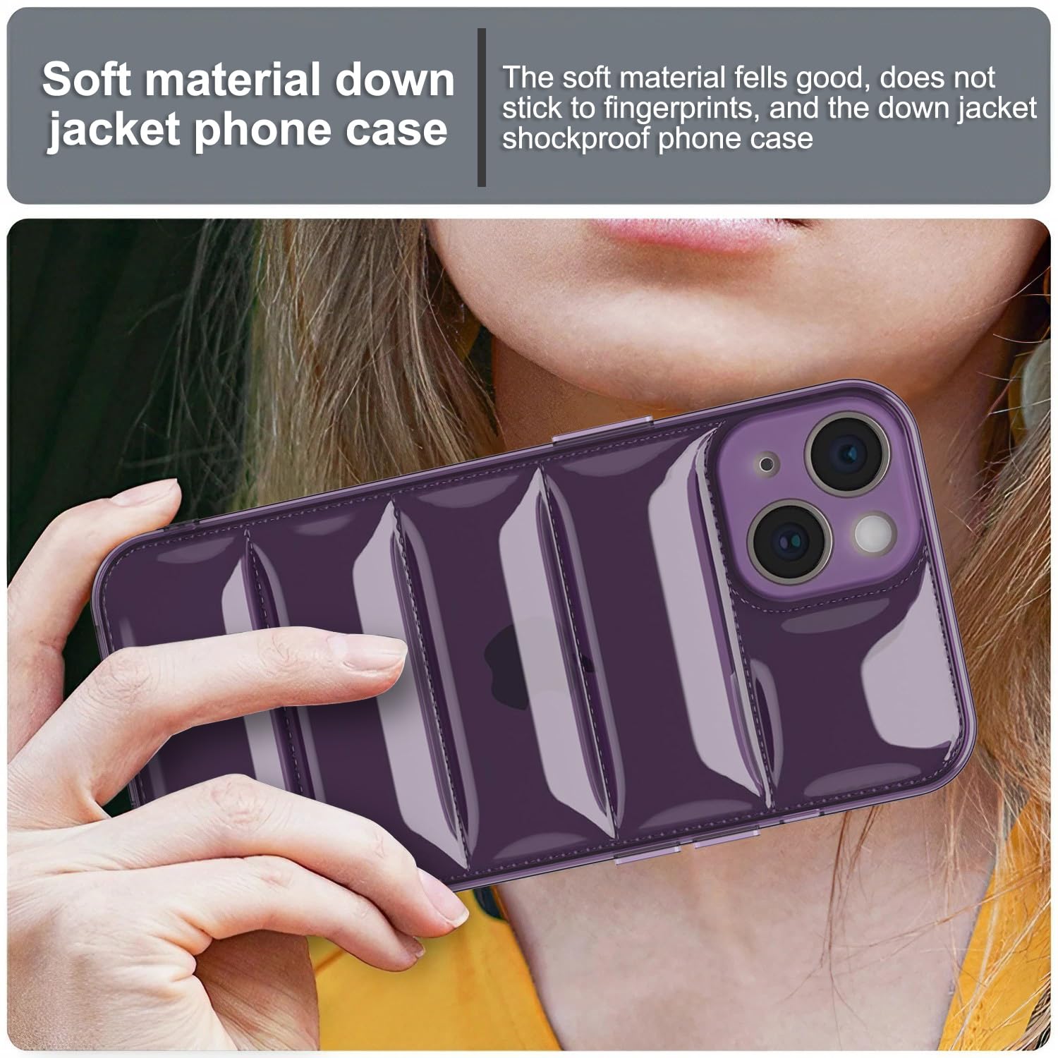 Amazon Brand – Solimo Ultra-Thin Transparent Puffer Case Camera Protection Soft Back Cover for Apple iPhone 14 Plus – Purple