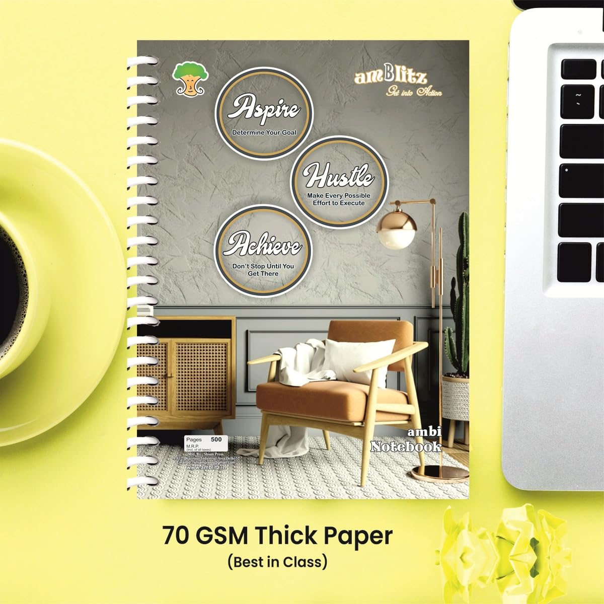 amblitz Spiral Notebook | UnRuled | 500 Pages | A4 Size - 21 X 29.7 CM | 70 GSM Thick Paper | Notebook for Student