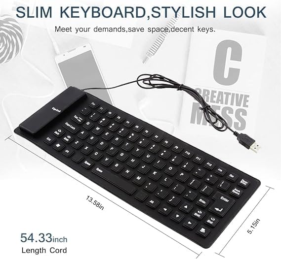 The keyboard can be folded to fit in your pocket or open to a full-size keyboard. Unfolded Size: 11.96 x 3.82 x 0.35 inch. Folded Size: 5.98 x 3.82 x 0.71 inch.