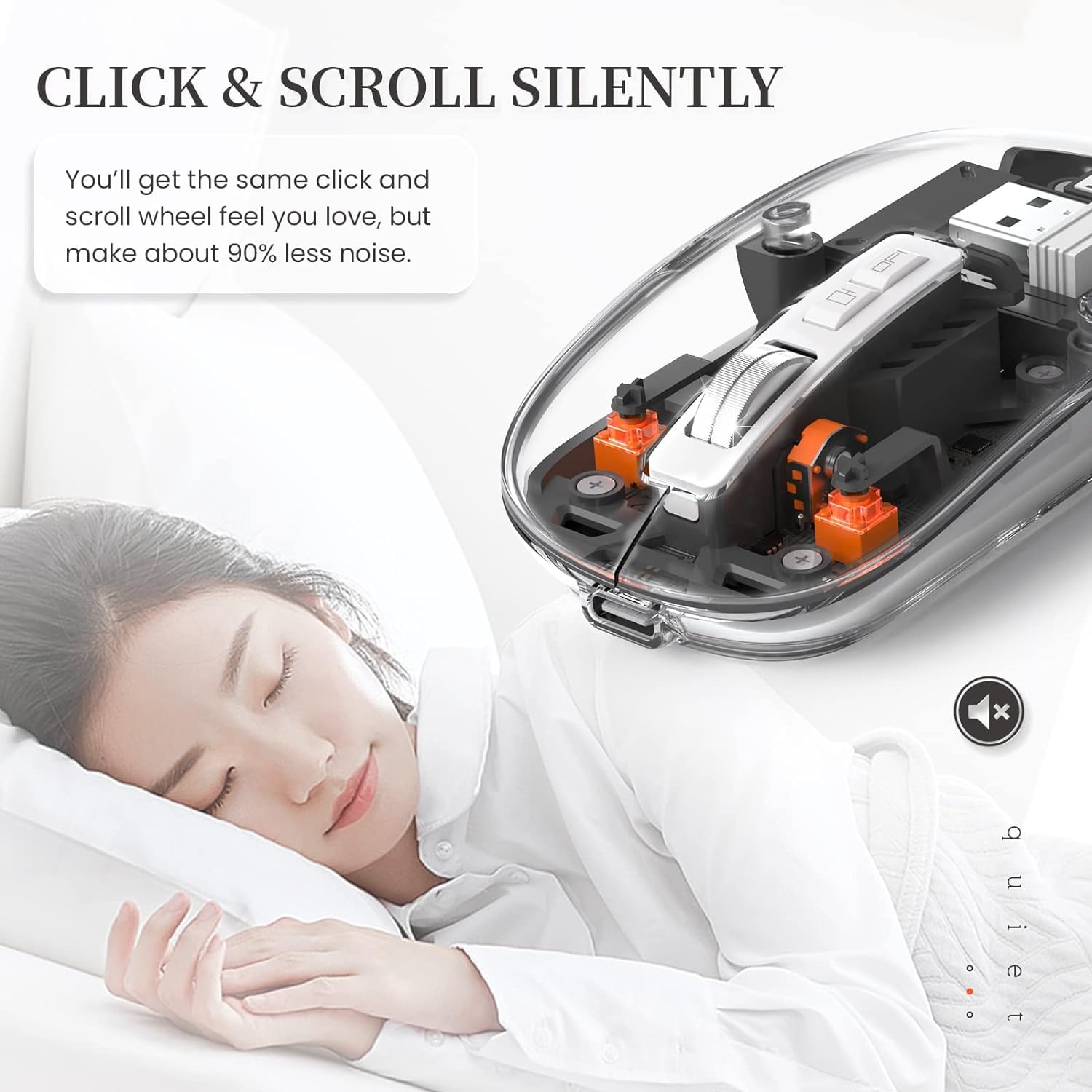 【Silent Click & Metal Scroll Wheel】Work in an open office, a library, or even a crowded train without disturbing anyone around you. You’ll get the same click and scroll wheel feel you love, but make about 90% less noise. The sturdy anti-slip metal scroll wheel enhance the texture while ensuring your hands don’t slip when rolling.