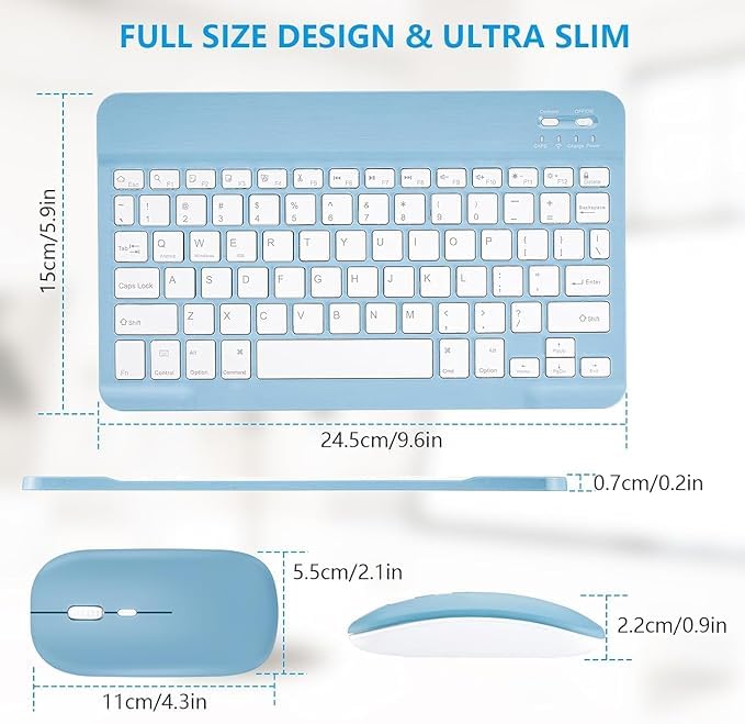 【Ultra Slim & Light】 Small wireless keyboard size is 24.5x15x0.6cm (9.6×5.9×0.2in) and the weight is 185g (6.52oz). Ultra-slim, super light design allow you to put it in the backpack, computer bag, suitcase, to carry anywhere you want, will not take up space or add extra weight. Perfect for anyone who needs a portable keyboard for work or play. Weight: 185g/6.52oz