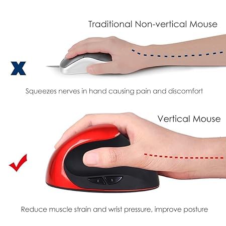 ERGONOMIC DESIGN : The ergonomic design offers your hand maximum support for lasting comfort, Make your hand in a natural handshake position, less overall strain helping alleviate wrist pain. (Note: it is right-handed mouse)Vertical healthy mouse 2.4GHz Wireless Connectivity (USB receiver ), Suitable for PC Laptop Desktop Computer With USB port. Ergonomic designed to remit and prevent carpal tunnel syndrome.