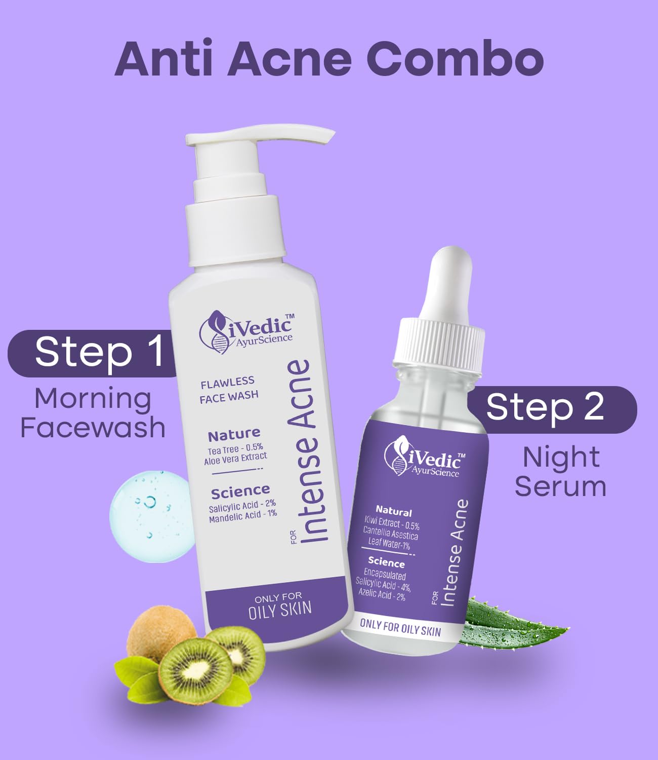 Ayurscience: A Blend Of Natural Ingredients And Scientific Actives To Give You Both Safe And Effective Facewash And Serum. Then Facewash Ingredients Contains Natural Actives Like 1% Honey ,Aloe Vera Extract And Scientific Actives Like 1% Mandelic Acid ,1.4% Glycolic Acid & Serum Ingredients Contains Natural Actives Like 0.5% Centella Asiatica Leaf Water ,Aloe Vera Extract And Scientific Actives Like 2% Salicylic Acid ,Niacinamide.