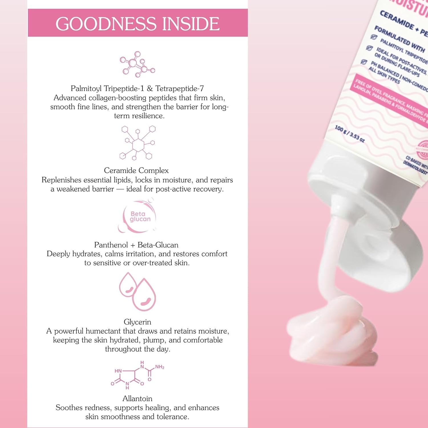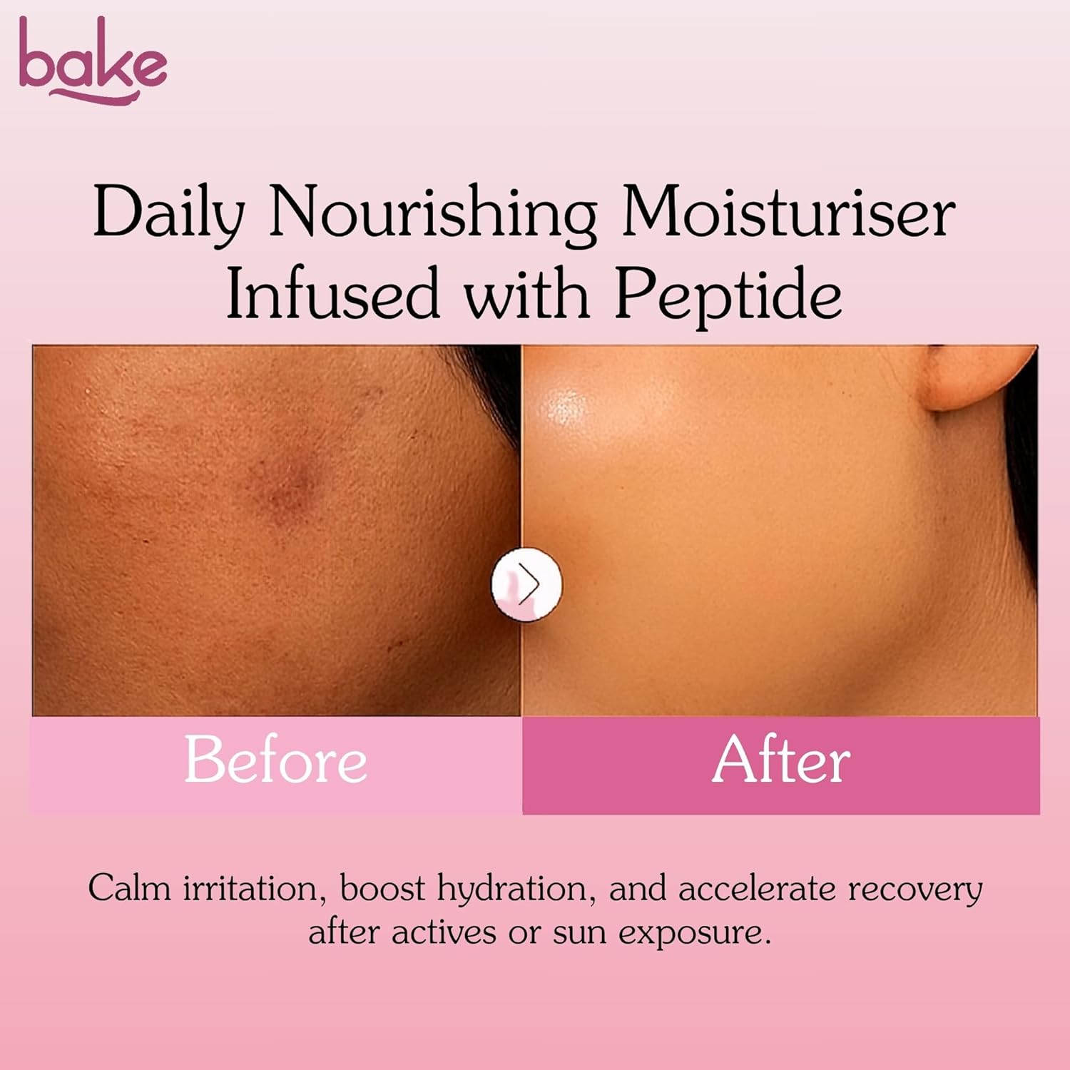 BAKE Nourishing Ceramide Face Moisturizer Formulated With 3 Essential Ceramides, Hyaluronic Acid & Peptides for 72 Hour Hydration | Non Comedogenic Moisturizer | For Post Acne Marks & Acne Scars - 100g
