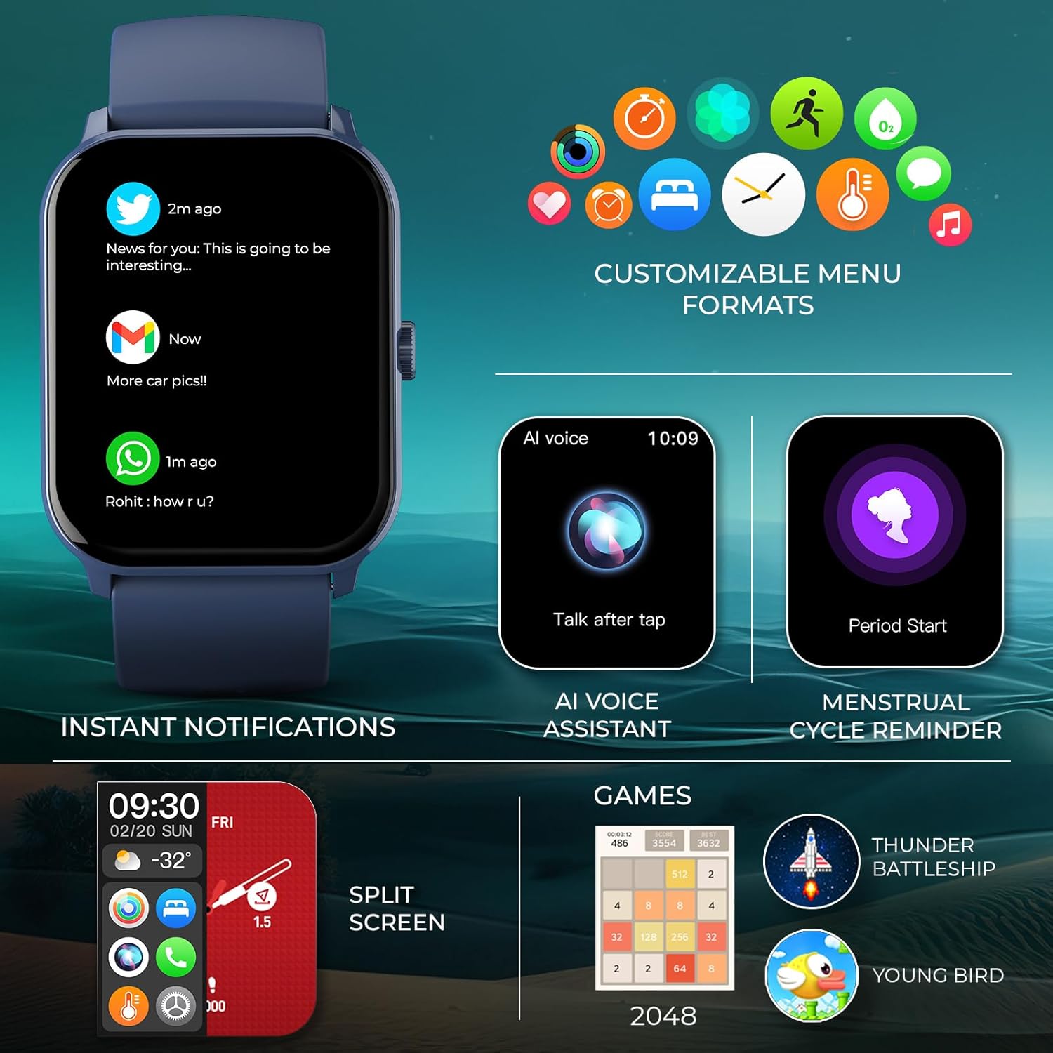 Instant Notifications: The beatXP Marv Neo smart watch for men and women will keep you aware and alert about your texts, whatsapp, or any social media notification. Everything within your glance.