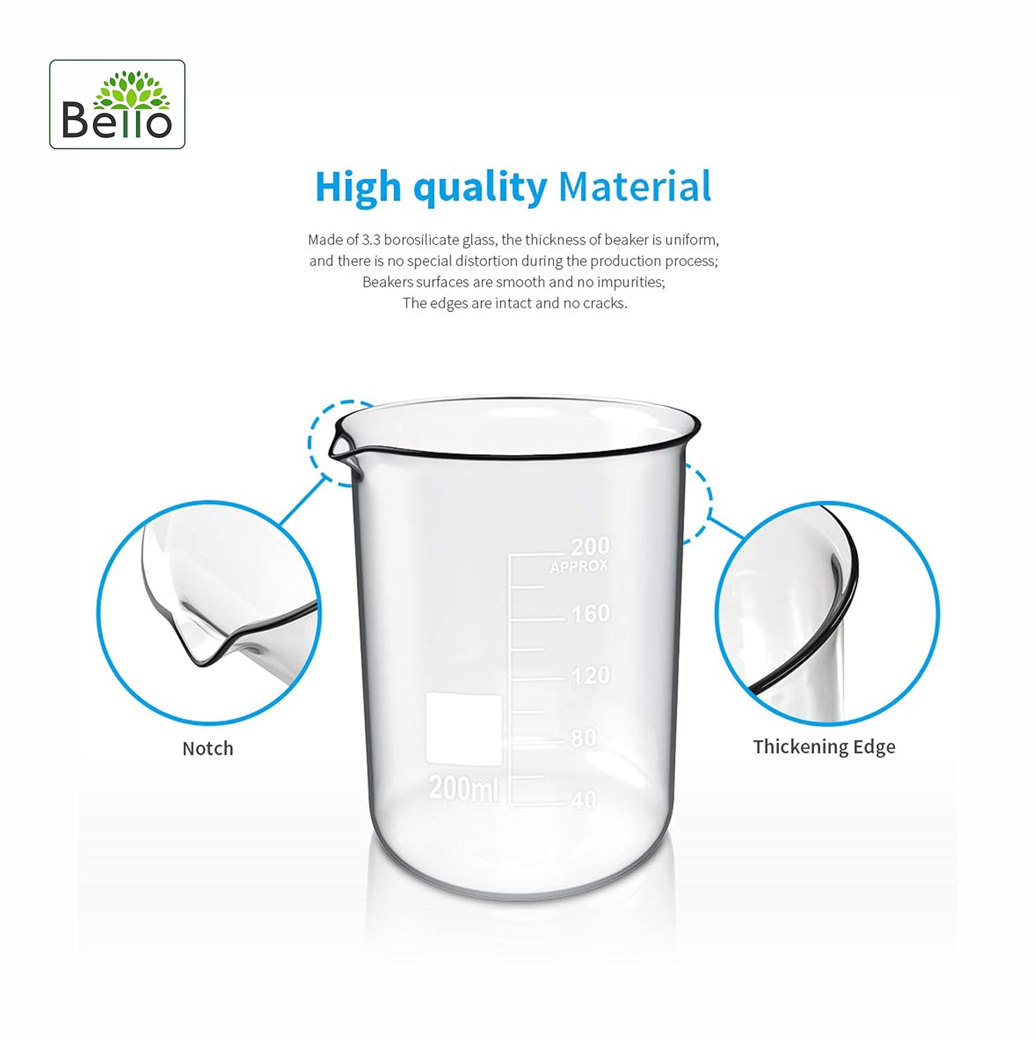 Bello borosilicate beakers available in different capacities with equal wall thickness to provide the optimum balance.