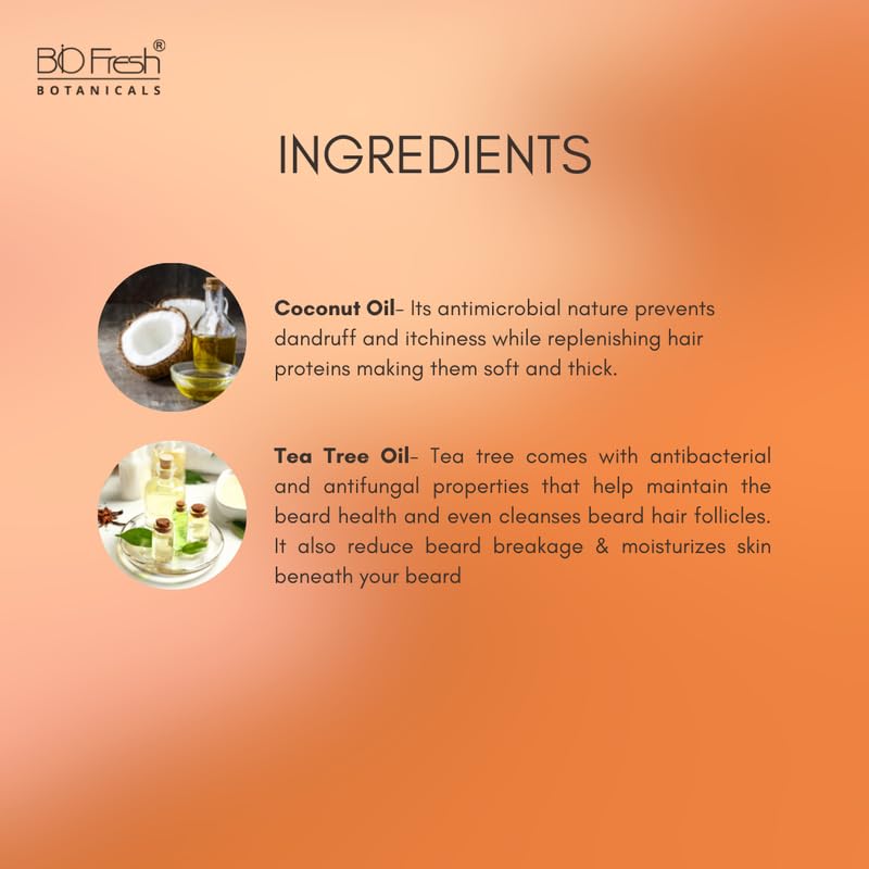 Product Details: Contains 1 Pack of Beard Growth Oil | Net Quantity: 30ml | Item From: Liquid | 100% Vegan | Scent: Coconut | Hair Type: All Hair Types | Ingredients: Onion Oil Advanced Formula | 10X Smooth Shine | Ensure your Beard Stays Safe and Healthy with our Biofresh Menz Beard Oil.