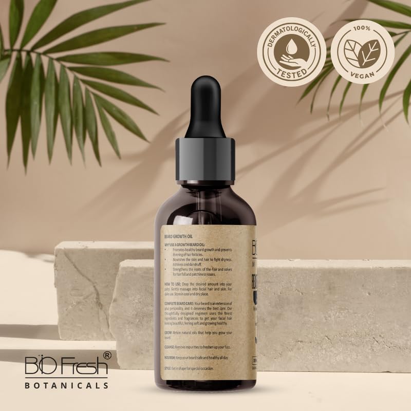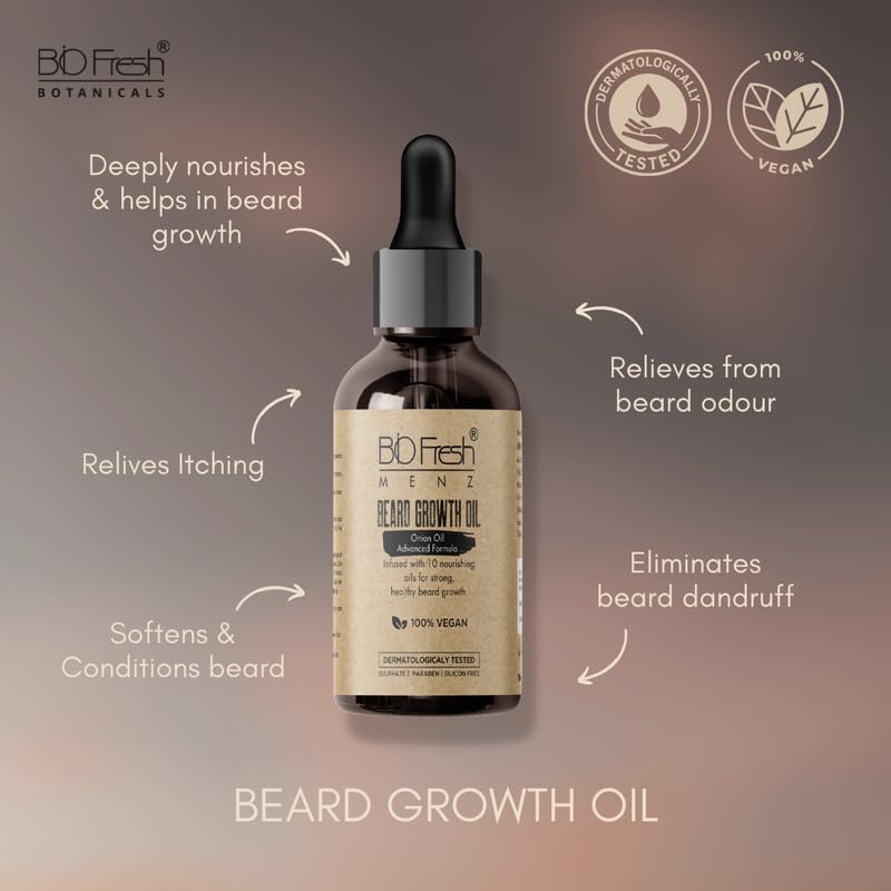Can this Oil Promote Beard Growth? Our Biofresh Beard Growth Oil is infused with Onion Oil Advanced Formula which is rich in Sulphur and Antioxidants. These Nutrients help Strengthen Hair Follicles giving Thicker and Fuller Beard Growth.
