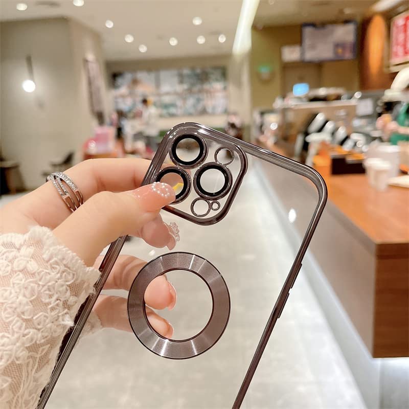 Bkandy Electroplating Clear Transparent Soft TPU Phone Case Logo Showing Back Cover for (iPhone 14 Pro Max, Blue)