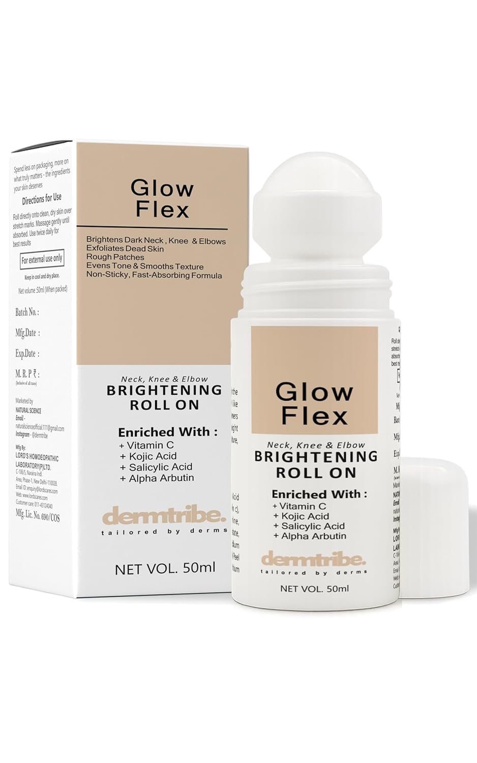 This brightening roll-on for neck, elbows, and knees is formulated with powerful ingredients like Kojic Acid, Alpha Arbutin, Vitamin C (Sodium Ascorbyl Phosphate), Salicylic Acid, Glycolic Acid, and Lactic Acid to help reduce the appearance of dark patches, uneven skin tone, and pigmentation commonly found around joints. Designed for men and women, this roll-on pigmentation serum targets hyperpigmentation on knees, elbows, and dark necks caused by dryness, friction, and sun exposure. Kojic Acid and Alpha Arbutin work together to visibly brighten skin, fade pigmentation, and promote an even tone. Vitamin C provides antioxidant support to help protect skin from dullness while boosting radiance and collagen production. Salicylic Acid (BHA) exfoliates deep within pores, while AHAs like Glycolic and Lactic Acid gently resurface rough skin texture without irritation. This serum roll-on is enriched with moisturizers like Glycerine, Caprylic/Capric Triglyceride, and Vitamin E to provide deep hydration and prevent dryness in high-friction areas like knees and elbows. It’s suitable for all skin types including oily, dry, normal, and combination skin. Unlike typical creams or lotions, this roll-on pigmentation corrector offers easy, mess-free application and ensures precise coverage on target areas. With consistent use, it helps reduce the look of darkness, dullness, and uneven tone around joints and folds, making it ideal for Indian skin tones. The fast-absorbing formula is non-sticky, non-greasy, and lightweight, making it perfect for use under sunscreen or body lotion. Use it daily after shower or cleansing and always follow with SPF in the daytime. This skin-brightening formula is free from parabens, silicones, sulfates, mineral oil, artificial colors, and synthetic fragrance, making it a clean and conscious choice for your skincare routine. Whether you are looking for a dark neck treatment serum, elbow pigmentation roll-on, or a skin-lightening solution for knees (without using bleaching agents), this exfoliating roll-on with 6 actives is a complete daily care product for stubborn patches. The 40ml roll-on bottle is compact, travel-friendly, and easy to carry in your skincare bag. It’s ideal for daily use and supports smoother, brighter, and clearer skin with visible improvements over time. Made for Indian weather and skin concerns, this roll-on can be used by both men and women for treating dark spots, uneven tone, and rough skin on elbows, neck, and knees. It is not a whitening cream but a scientifically-formulated brightening serum with clinically known actives like kojic acid and alpha arbutin that support natural skin tone recovery. Add this serum to your daily body care routine and target pigmentation around joints without irritation. Commonly searched as elbow dark spot treatment, body serum with kojic acid, pigmentation remover for neck and underarms, this roll-on helps reduce discoloration and supports healthy-looking skin across sensitive and hard-to-reach areas. It can also be used alongside body lotion or sunscreen and shows best results when used consistently twice a day. For external use only. Always do a patch test before full application.