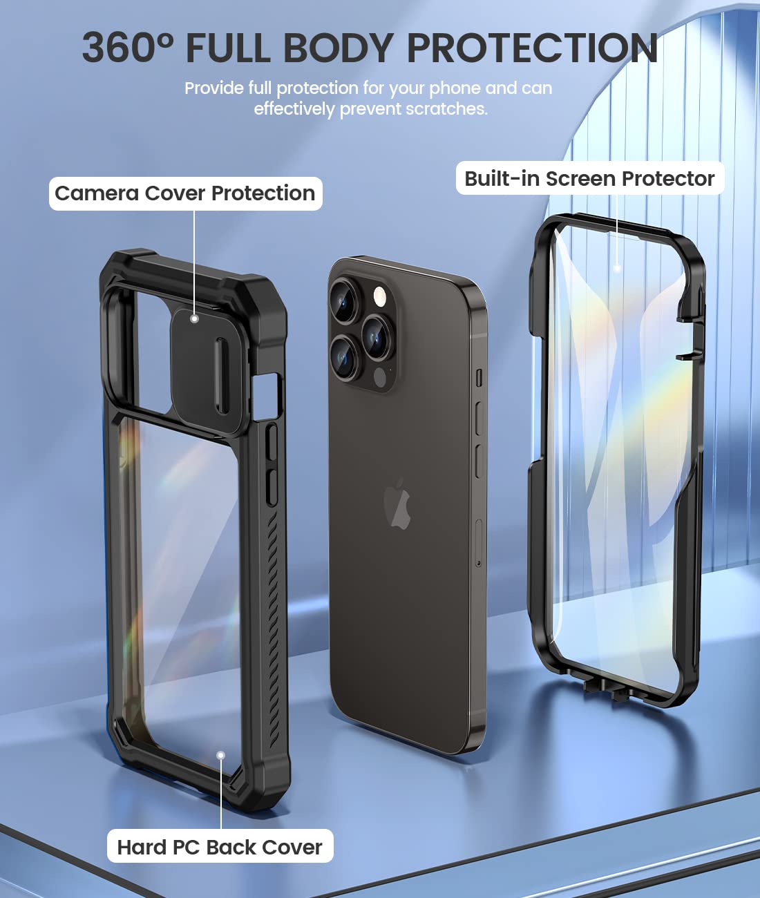 360 degree full protection: The iPhone 14 Pro Max case offers 360-degree protection with a dual-layer structure that absorbs and deflects impacts, keeping dirt and dust out, and elevated lips to protect the camera and screen from scratches