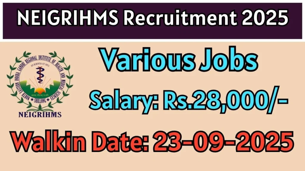 [ad_1] NEIGRIHMS Recruitment 2025 North Eastern Indira Gandhi Regional Institute of Health and Medical Sciences (NEIGRIHMS) Recruitment 2025 for 1 posts of Project Technical Support III. Candidates with B.Sc, M.Sc Can attend the walkin. The Walk-in on 23-09-2025. For detailed information please visit NEIGRIHMS official website, neigrihms.gov.in. Name of the Post: NEIGRIHMS Project Technical Support III Walk in 2025 Post Date: