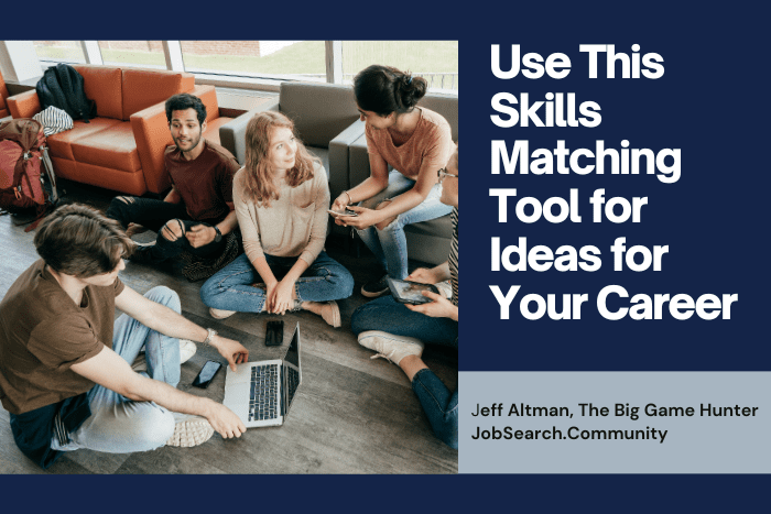 [ad_1] By Jeff Altman, The Big Game Hunter Here’s a free website to give you ideas for careers to consider using this skills matcher. The Career-Change Journey: Part 1 CareerOneStop.org is a US Government website that has a lot of great information for job hunters. One of the things I think is particularly interesting is what they call a Skills