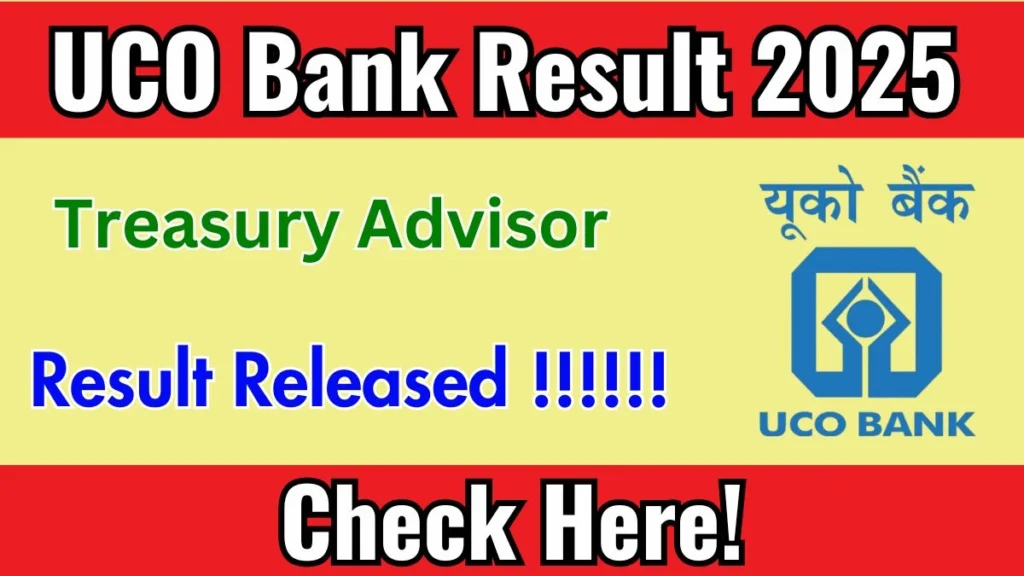 UCO Bank Treasury Advisor Result 2025 Out at ucobank.com, Direct Link to Download Result PDF Here