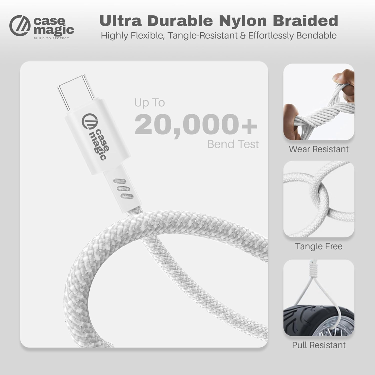 Durable PVC Build With Reinforced Connectors: Made from tough, flexible PVC to resist over 10,000 bends and reduce wear. Features a tangle-resistant design and strong connectors for long-lasting durability at home or on the go.