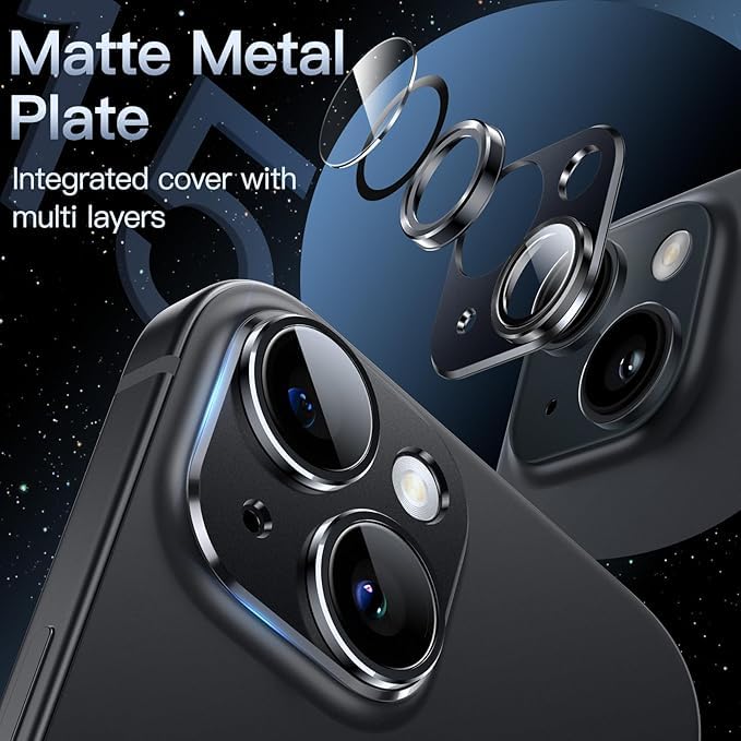 CASUAL NEED = [Snug-Fit] Adopt 1:1 precise cutting to perfectly fit the camera lens of iPhone 15 6.1-inch and iPhone 15 Plus 6.7-inch. Only 0.12 mm higher than original profile and leave enough edge space to work well with most phone cases [Match Colors] The color design suits the color of your phone very well. Its delicate 3D texture reflects a beautiful luster under the light and makes your phone more stylish [HD Photography] The clear camera lens covers with AR coating helps reduce reflection and dazzle, providing 99.9% light transmittance and ensuring the original quality of every photo and video you snap [Use Camera’s Flash] Built-in black circles allow you to use the flash function of your camera normally. Easy to install after cleaning, no fogging and strong adsorption, not easy to fall off [Full Coverage Protection] Integrated into a full-cover sturdy camera lens protector with a matte aluminum alloy base and built-in tempered glass lenses covers, highly protect the camera against daily scratches and abrasions