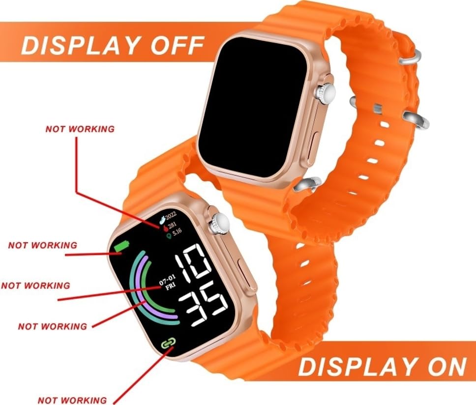 Upgrade your style with this Ultra LED Square Digital Smartwatch featuring a trendy Orange combo strap. With a clear digital display and a modern design, this watch is perfect for everyday wearIts lightweight and comfortable build makes it ideal for sports, casual outings, and daily use. Stay stylish and on time with this must-have accessory! Trending Ultra LED Square Digital Watch – Stylish Orange | Unisex Digital Watch for Boys & Girls with Ultra Strap