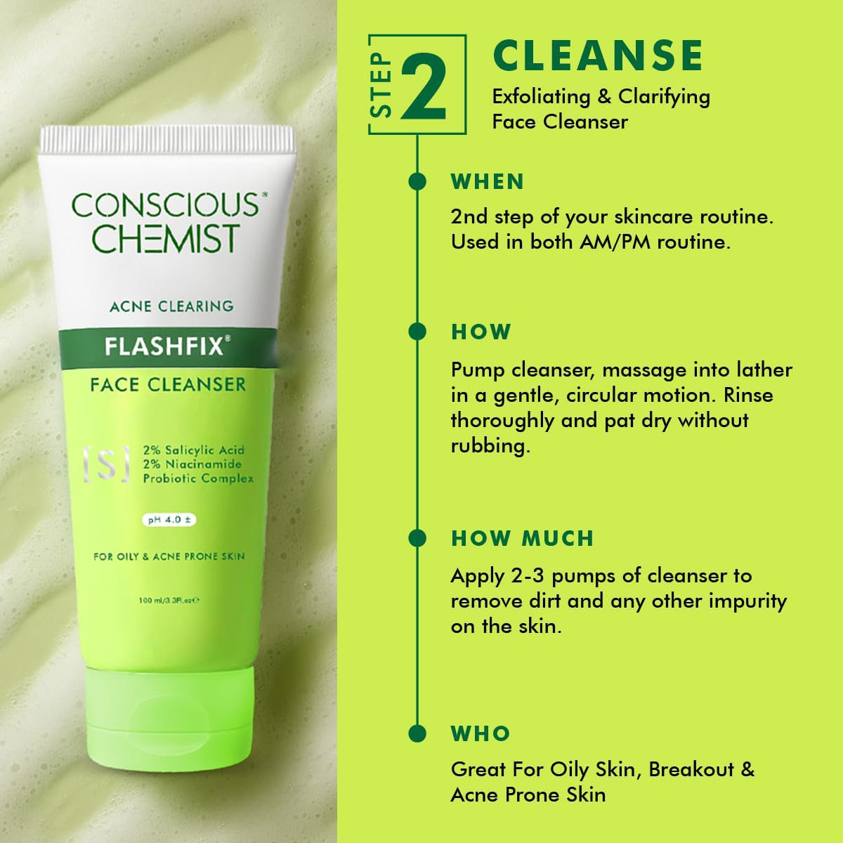 Grab your one-shot Pore care! Daily dissolve Oil Cleanser – Make way for your first essential cleanse with Daily Dissolve cleansing oil. It is designed to remove even the toughest pigments & pollutants. Flashfix Oil Control Cleanser – It is carefully formulated to reduce breakouts and prevent future ones.It gently removes pore-clogging debris, impurities and excess oil, this refreshing gel cleanser lifts away daily build-up to leave your pores feeling clean and purified.