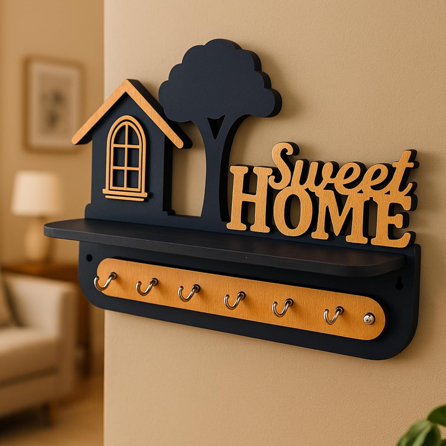 Bring a slice of tropical paradise to your home with the Premium Palm Tree Wooden Key Holder from D Unique Home Decor. This beautifully crafted key holder combines functionality with artistic elegance, making it the perfect addition to any modern living room, entryway, or hallway. Known for its unique designs and quality craftsmanship, D Unique Home Decor has created a timeless and practical solution to keep your home organized while adding a serene, nature-inspired touch to your décor. The key holder features a premium 3D design with a stunning wooden palm tree cutout, giving it a lifelike, intricate look. Designed with a 5.5 mm solid wooden base, this key holder is both durable and lightweight, ensuring long-lasting performance without compromising on style. The top 3 mm palm tree cutout has been skillfully carved, creating depth and texture that makes the palm tree design pop. This 3D design not only brings a calming, beachy atmosphere to your space but also serves as a focal point that enhances the overall aesthetic of any room. The 7 stainless steel hooks are strategically placed to offer ample space for organizing your keys, hats, scarves, or even small bags. The high-quality stainless steel hooks offer both durability and a sleek, modern contrast to the rich, natural wood base. The hooks are carefully positioned to ensure that each item stays securely in place, while also maintaining a clean and minimalist look. With seven hooks, you have enough space to keep multiple items organized, helping you maintain a clutter-free environment. This key holder is designed to be wall-mounted, which not only saves valuable counter or tabletop space but also creates a clean and tidy look in your living room or entryway. The wall mount design makes installation quick and easy, and once mounted, the key holder stays securely in place, adding a functional and stylish feature to your home. Its sleek, modern design integrates seamlessly with various home styles, from contemporary to coastal, and complements a range of colors and textures. Perfect for anyone looking for a unique home décor piece that is both practical and beautiful, this Premium Palm Tree Wooden Key Holder offers the perfect balance of form and function. Whether you are looking to keep your keys and accessories organized or simply want to add a nature-inspired element to your décor, this key holder will become a standout piece in your home. From its artistic palm tree design to its premium materials and functionality, it’s a must-have for those seeking to infuse their living spaces with a sense of tranquility and charm. Key Features: Premium 3D Design: Features a beautifully detailed wooden palm tree cutout with intricate carving for a stunning, lifelike 3D effect, creating a serene and tropical ambiance in your home. Durable Construction: Built with a 5.5 mm solid wooden base and a top 3 mm palm tree cutout, ensuring long-lasting durability and strength, while maintaining a lightweight design. 7 Stainless Steel Hooks: Equipped with seven high-quality stainless steel hooks for organizing keys, bags, hats, scarves, or any other small accessories you want to keep handy and organized. Wall Mountable: Designed for easy wall mounting, this key holder saves space and provides a sleek, modern look in your entryway, living room, or hallway. Modern Design: The combination of wood and stainless steel hooks with the premium 3D palm tree design gives this key holder a modern yet timeless appeal, suitable for a variety of interior styles. Trusted Product of Brand D: A product from D Unique Home Decor, renowned for its attention to detail, quality craftsmanship, and unique designs. Versatile Organizer: Ideal for organizing keys, coats, bags, or accessories while serving as a stunning tropical-inspired décor piece in your home. With this Premium Palm Tree Wooden Key Holder, you are not just investing in a functional organizer but in a beautiful work of art that adds a peaceful, nature-infused touch to your space. Whether you place it in your entryway to welcome guests or use it in your living room as a statement piece, it will help keep your home neat and stylish, all while making a statement.