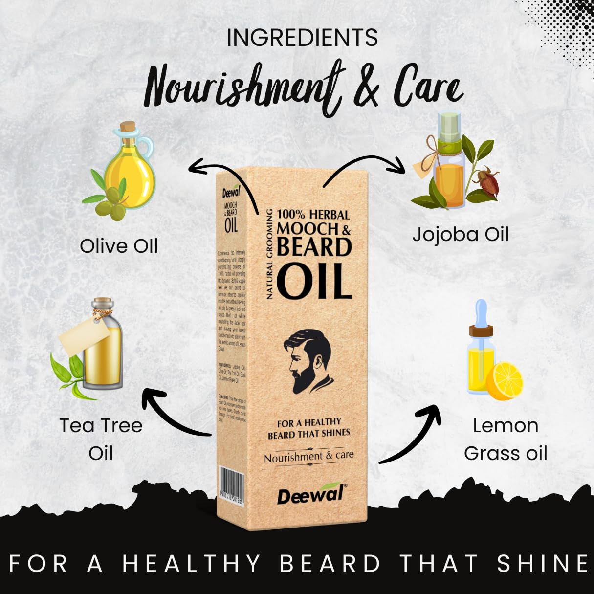 Natural Grooming Solution: Deewal Mooch & Beard Oil provides a natural grooming solution for a well-maintained and stylish look.