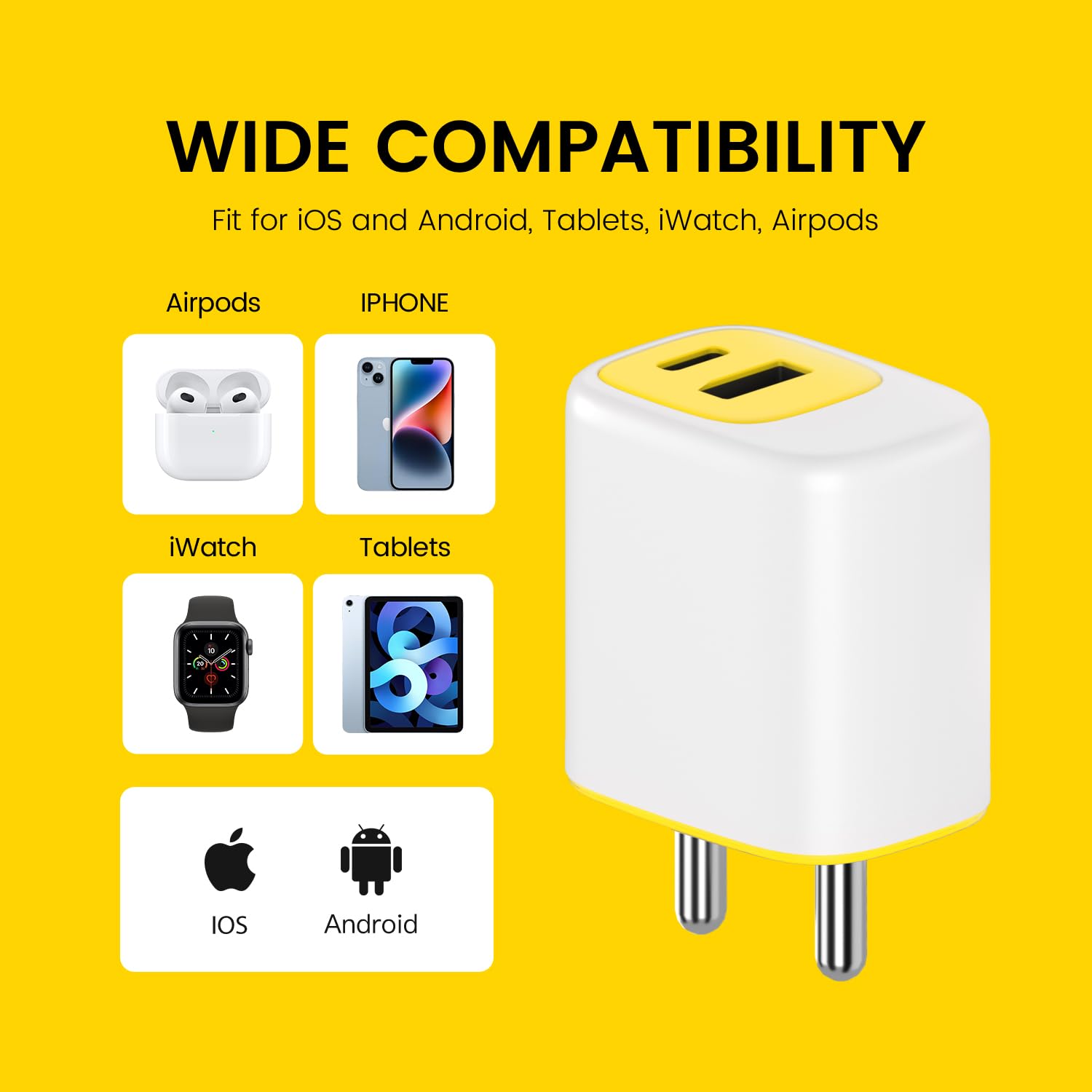 Universal Compatation:USB C charger fast charging can save you time, USB C Charger is great and compatible with iPhone 16/16Plus/16 Pro/16Pro Max, 15 / 15 Plus/ 15 Pro / 15 Pro Max / 14 / 14 Plus / 14 Pro / 14 Pro Max / 13 / 13 Pro Max / 13 Mini / 12/12 Pro Max/12 Mini/SE/11/XS/XS Max/XR/X/8, iPad. The USB charging adapter is compatible with iPhones, iPads, iPods, smartphones, MP3 / MP4 players, play equipment, GPS devices, PC tablets, Google Nexus Tablet, Samsung Galaxy Tab, and other digital devices
