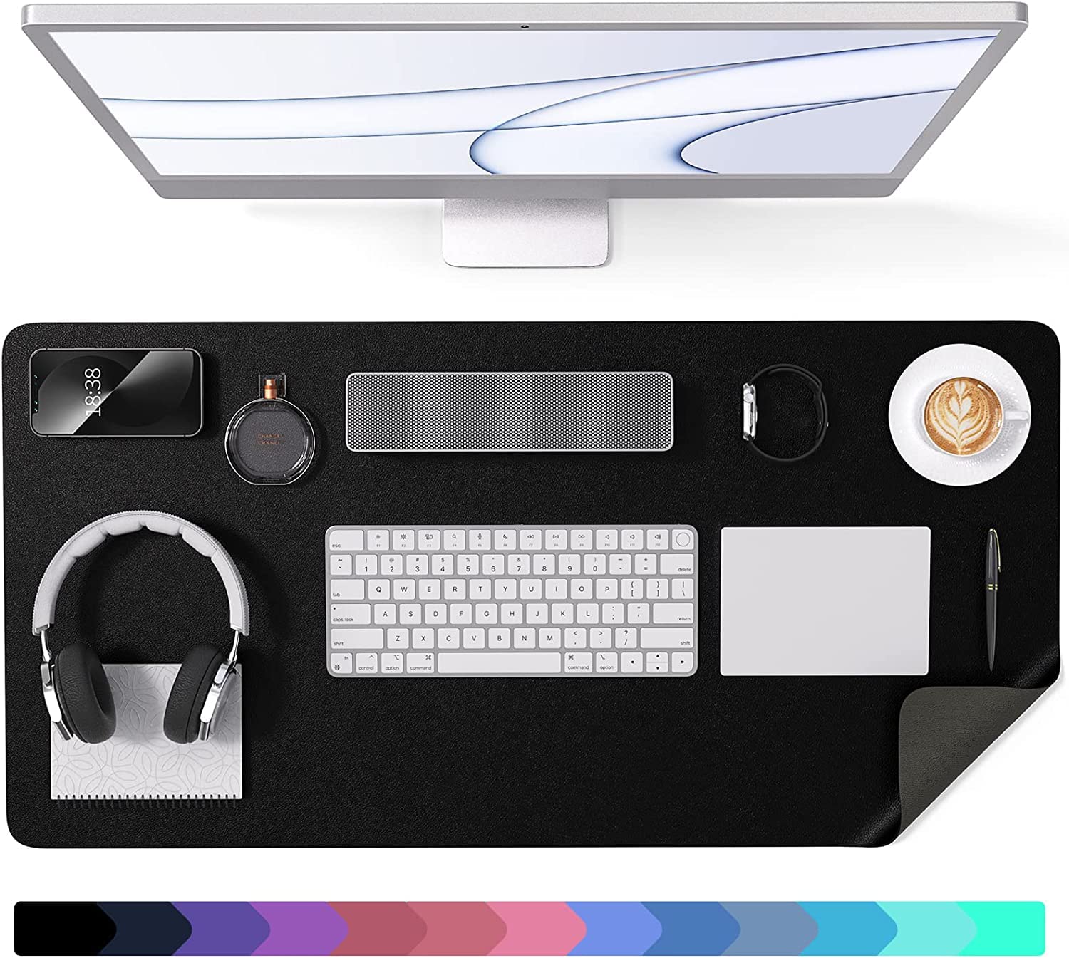 Dual Side Usage and Multi Size and Multi Color Selection:Different color in each side, same material for all the leather desk pad, special design to use in both side,2 in 1 desk pad, just turn it over and you can utilize it. Wide surface usage, size of 60*30, 80*40, large enough to accommodate your laptop, keyboard and mouse.