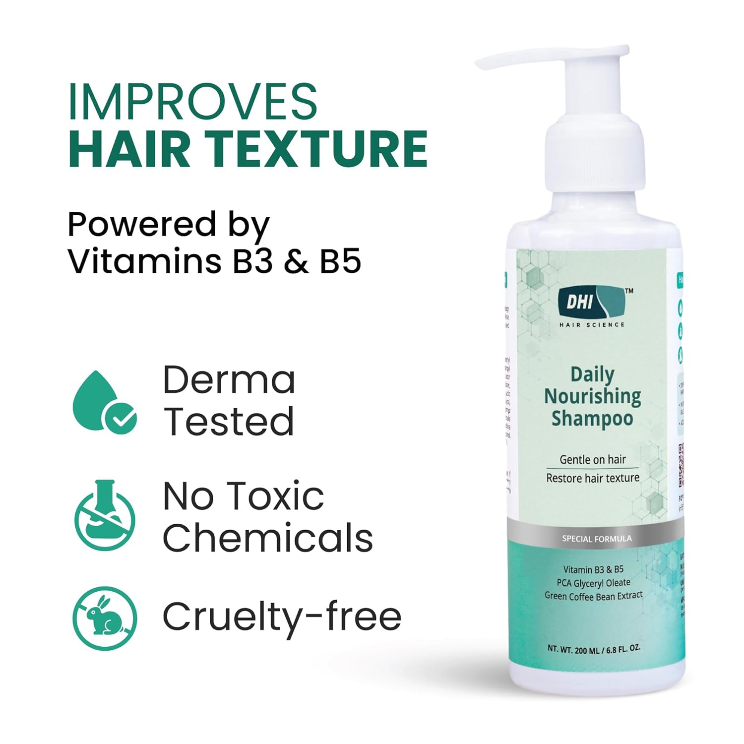 ✅MORE NOURISHMENT: DHI Daily Nourishing Shampoo is made with a unique blend of Vitamins B3 and B5, PCA Glyceryl, Oleate, and green Coffee Bean Extract. These ingredients work to strengthen hair and deeply nourish it from the root to the tip.