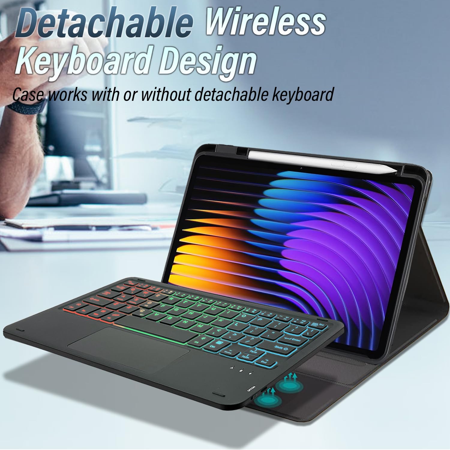 ⌨ 【3-Zone 7 Color Backlit】Backlit Detachable Keyboard makes your keyboard gorgeous and special, typing fun and easy in the dark/night. Built-in long life Lithium-ion battery and high quality waterproof keyboard conductive film, Adjustable backlight allows you to personalize your setup, match specific working conditions and showcase your favorite colors. Make it easier to find your keys in the dark.