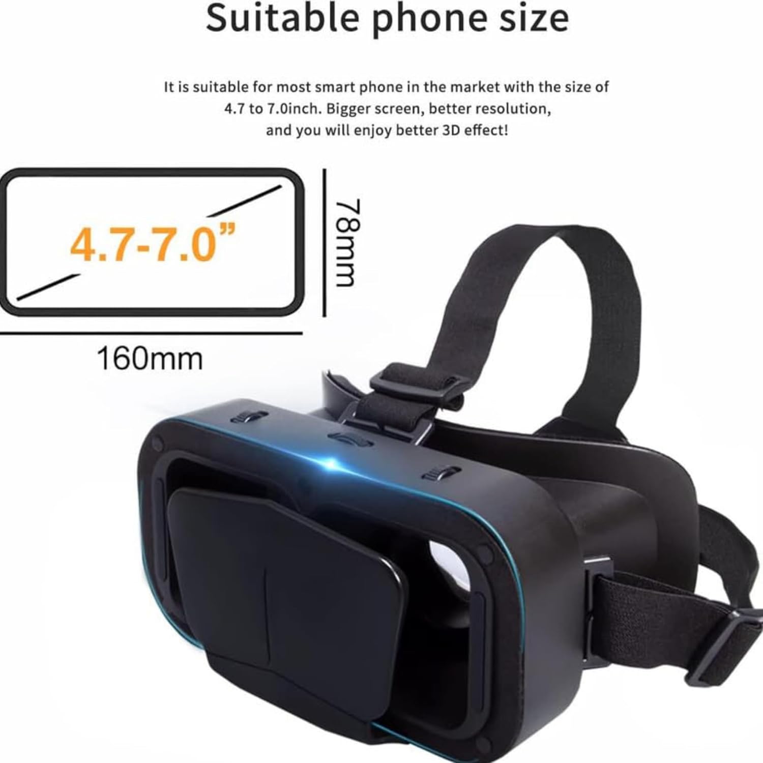 Virtual Reality Glasses with Adjustable Straps & Blue Lens β Immersive Experience for Gaming, Movies & TV