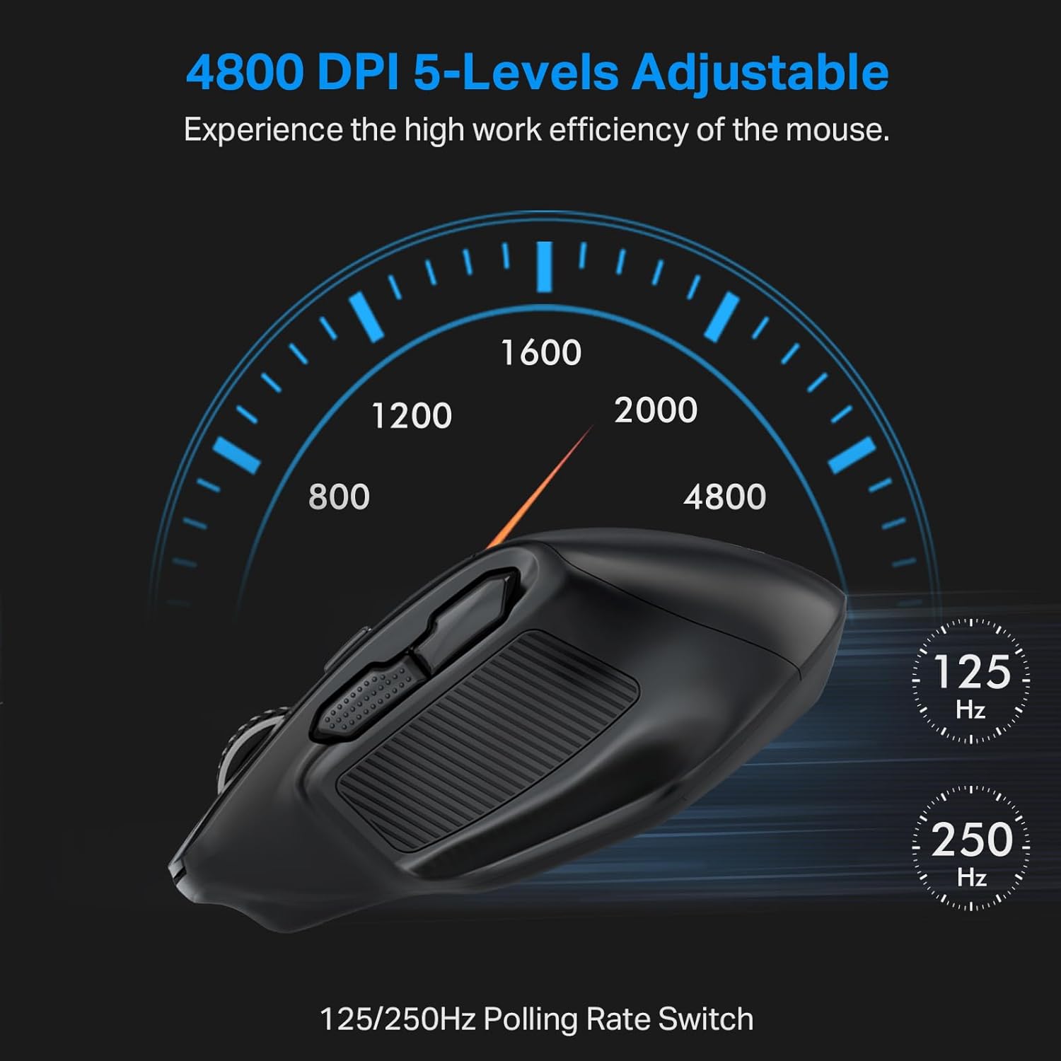 【5-Level 4800 DPI & 2 Kinds Polling Rate】5-level DPI settings (800/1200(default)/1600/2000/4800), choose your comfortable speed for working. X-31 will move more precise by 125Hz(default) or 250Hz polling rate: Press the right button + the middle buttom for 3 seconds to switch polling rate.