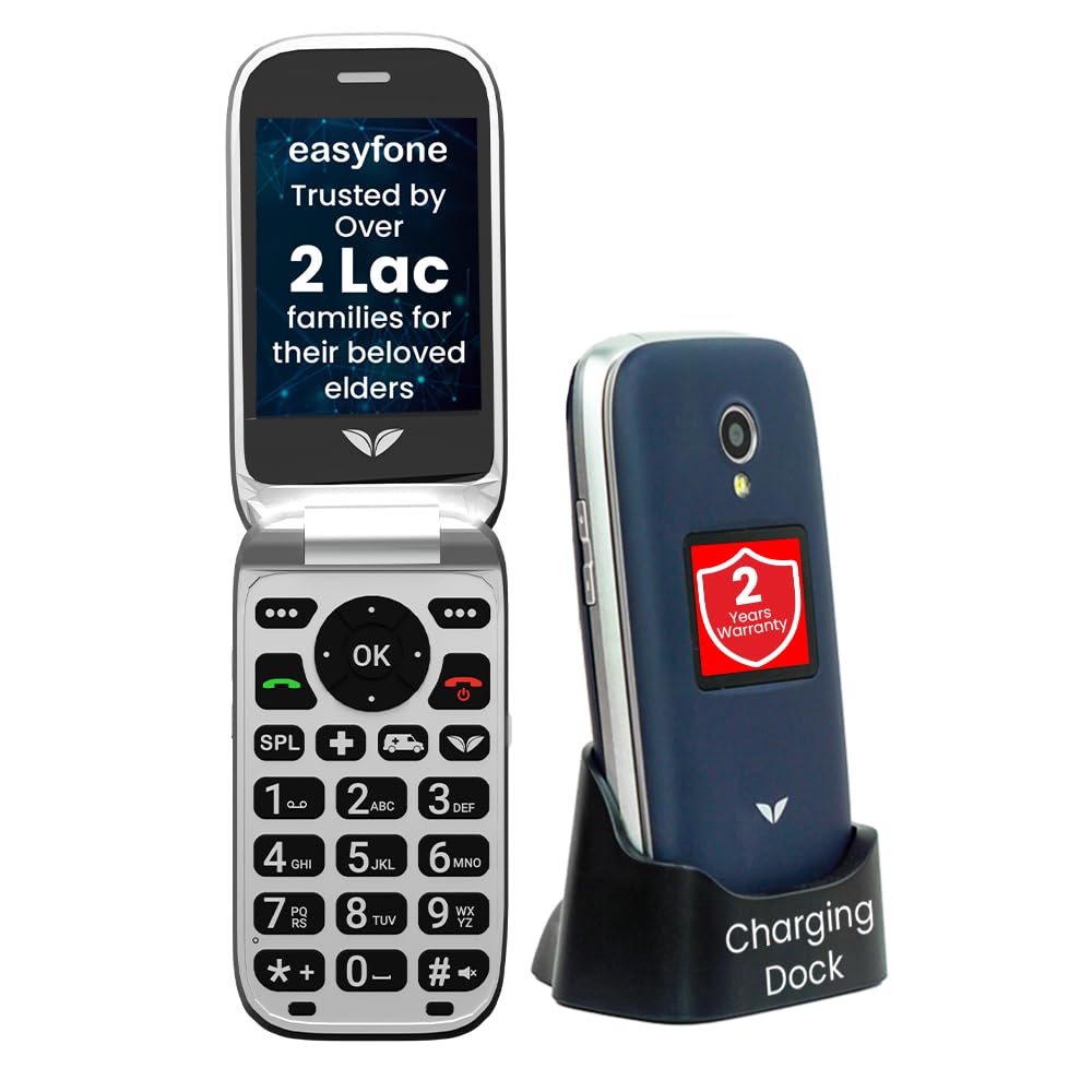 1 Year Subscription of the easyfone Care Plan worth Rs 999/ includedCare Plan includes 24*7 Ambulance co-ordination support in emergencies in 700 cities across Indiaeasyfone Royale 4G is compatible with Airtel, Jio, VI, BSNLeasy to dial, easy to hear, easy to use, easy to chargeeasy to get help in emergencies quickly with a dedicated SOS buttonNo more Fraud calls, Get incoming calls only from specified contactsCareTouch – Configure your elders easyfone remotely from anywhere in the world with the CareTouch AppSet Reminders – Stop worrying about your elderly parents forgetting to take medicines, missing doctor appointments or social engagements