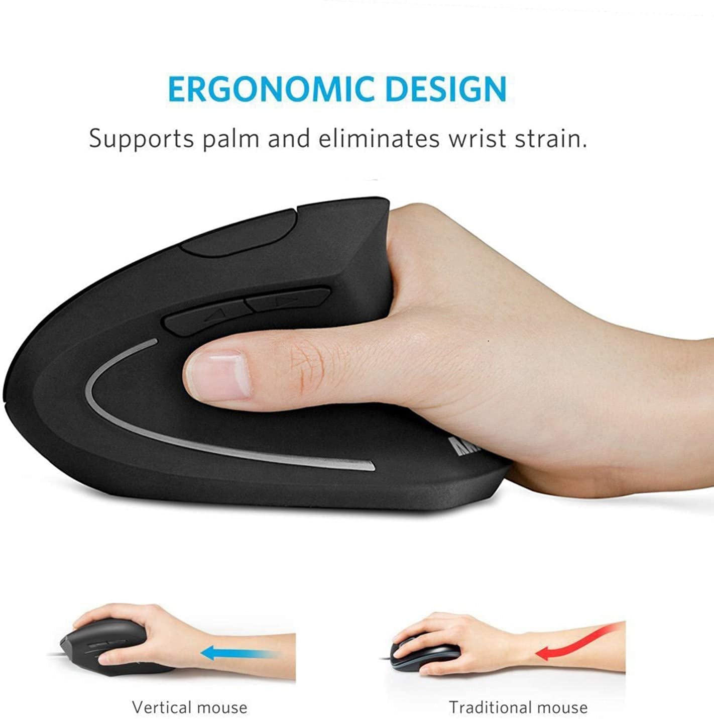 ※【HIGH SENSITIVE CONTROL】: Has 6 buttons and 3 levels DPI to change among 800/1200/1600 -Easily adjusts the sensitivity of the vertical computer mouse.Reliable 2.4GHz wireless connection with high anti-interference performance within 10 meters.
