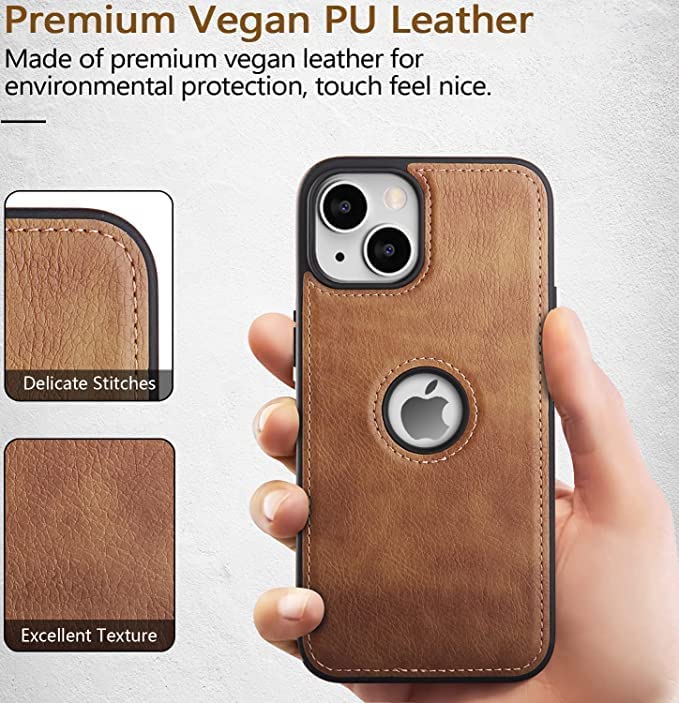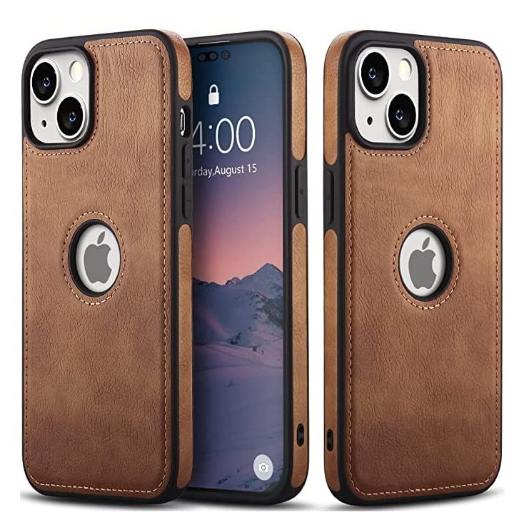 ELEF Premium PU Luxury Leather Logo Cut for iPhone 14 Plus Ultra Thin Back Cover for iPhone 14 Plus-Brown