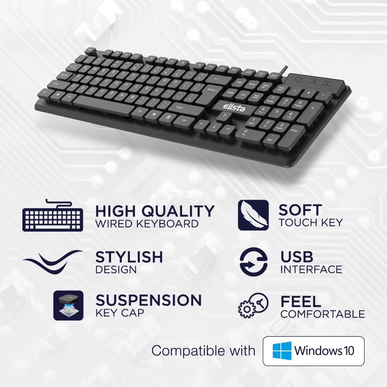 Elista Wired USB Keyboard for PC/Laptop |104 Chocolate Key Design with Membrane Switch | Silent Tactile Feeling Comfortable Switch | Plug and Play| Black (ELS WK-710)