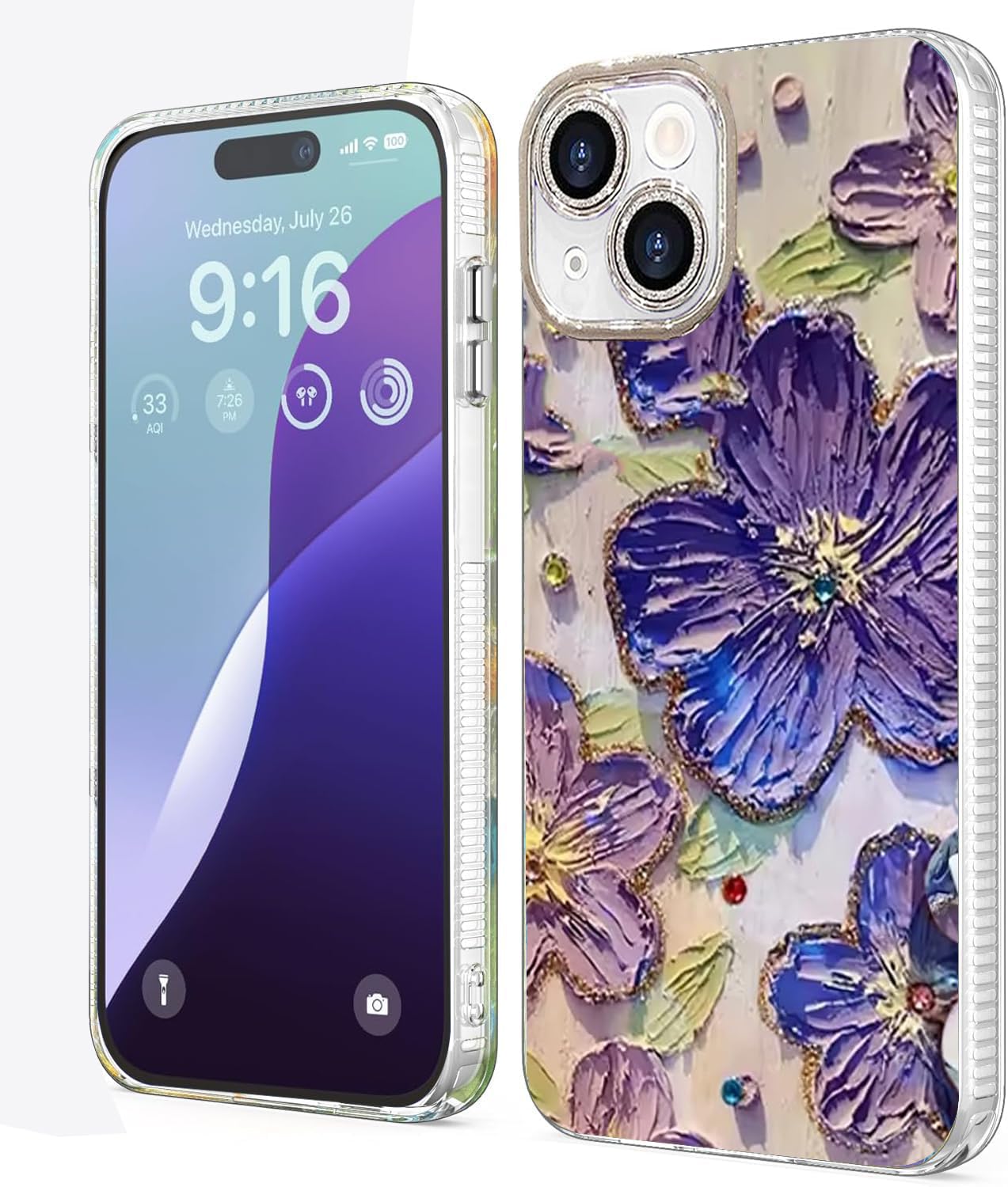 🌺【Stylish Bling Design】 – The sparkling diamond-like colorful vintage oil painting floral flower design makes your phone so pretty. The cute wavy border design makes your phone fashion and more eye-catching.