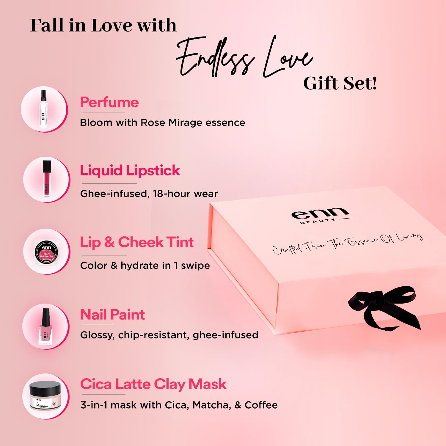 All-in-One Beauty Gift Set – Thoughtfully curated with 5 essential products: nail paint, lipstick, clay mask, lip & cheek tint, and perfume – everything you need for a complete beauty routine.