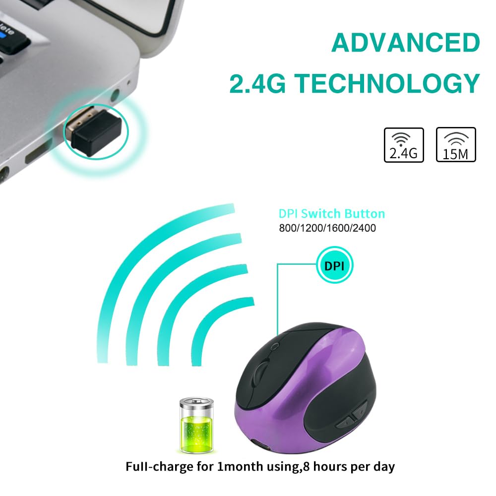 Plug-and-play and Wide Compatibility: The ergonomic mouse comes with a USB Nano receiver, plug and play directly.2.4GHz wireless technology ensure longer working distance-up to 33ft in 360 degree with no interference. Well compatible with Mac OS X, Linux and all versions of Windows such as Windows7/8/10/XP etc. Fits for desktop, laptop, PC, MacBook and other devices