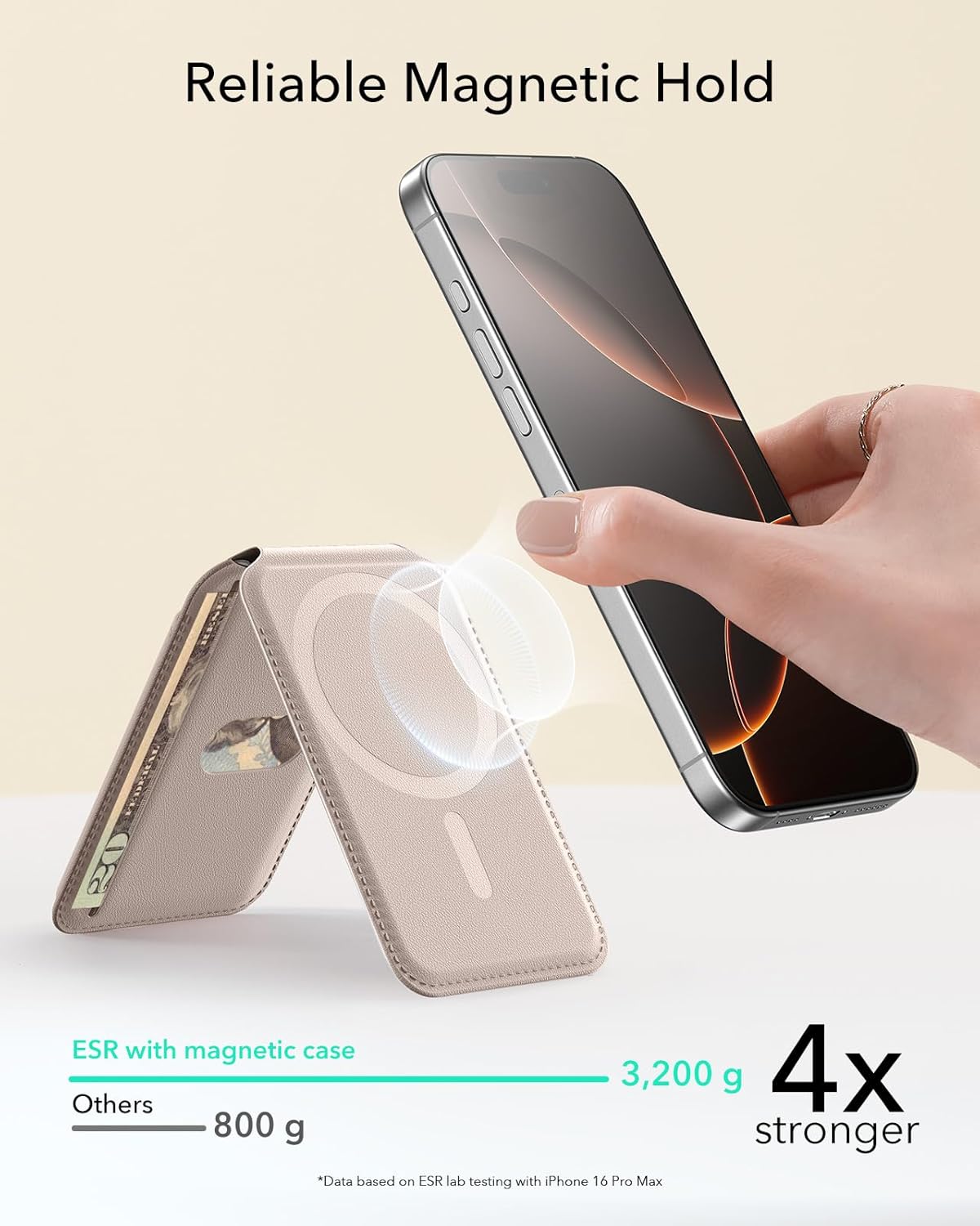 Stronger Magnetic Lock: upgraded to 3,200 g of holding force—4X stronger than the official brand—to ensure your wallet stand stays securely locked in place