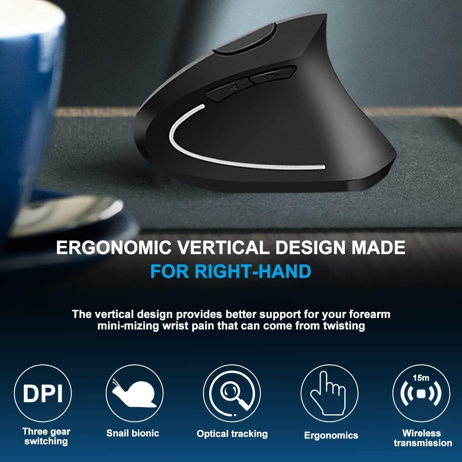 The well-thought-out design of the ergonomic wireless mouse integrates the best in comfort, fluid motion, and performance. Bringing your hand back to a more natural handshake position, the easily accessible buttons reduce unnecessary strain on your fingers and wrist.