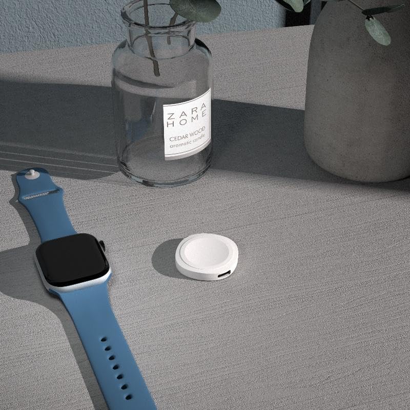 1. Input parameters: DC5V 1A 2. Output power: 3W 4. Product size (mm): 37 x 37 x 8.3 5. Product weight (g): 9.5g 6. Product material: ABS + metal 7. Product features: Type-C charging port design, universal version of watch wireless charging, simple appearance, small product size, easy to carry; overcurrent / overtemperature protection 8. Easy to charge Apple Watch Series 1-10 / SE1-2 / Ultra, earPods Pro 2, Earpods 4 & Samsung watch wireless charging Support Galaxy Watch 3 / 4 / 5 /6/7, Active 1/2