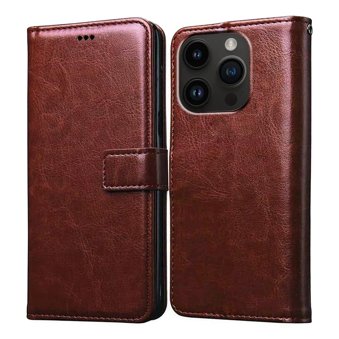 Flip Cover Back Case for Apple iPhone 14 Pro | Premium Leather Finish | Inbuilt Pockets & Stand | Flip Cover Back Case for Apple iPhone 14 Pro (Brown)